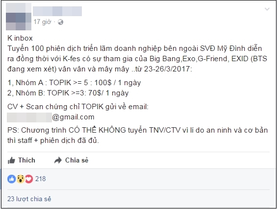 Thậm chí nhiều bạn đã quan tâm đến giá vé để có được khả năng gặp thần tượng dù không cần biết có phải đang liên hệ với đơn vị tổ chức thực sự (nếu có) hay không?