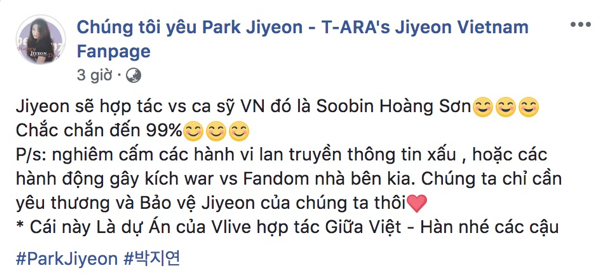 Rất có thể, Jiyeon và Soobin Hoàng Sơn sẽ hợp tác trong một dự án âm nhạc hợp tác giữa Việt - Hàn do V-live sản xuất.