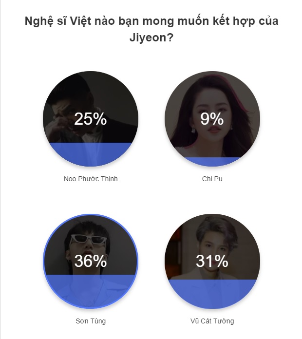 Và kết quả, Sơn Tùng M-TP là nghệ sĩ được độc giả SAOstar mong muốn hợp tác cùng Jiyeon nhiều nhất.