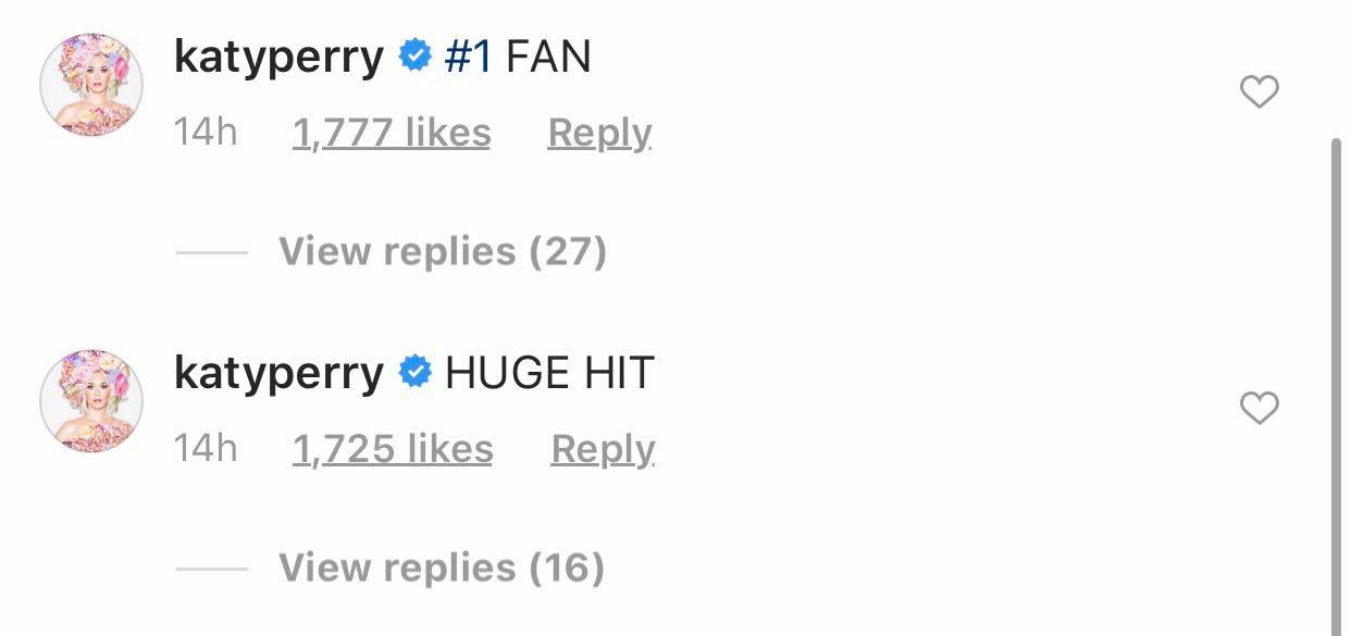 Không chỉ có fan hâm mộ mà kể cả “bà mẹ bỉm sữa” Katy Perry cũng hưởng ứng tích cực sản phẩm.
