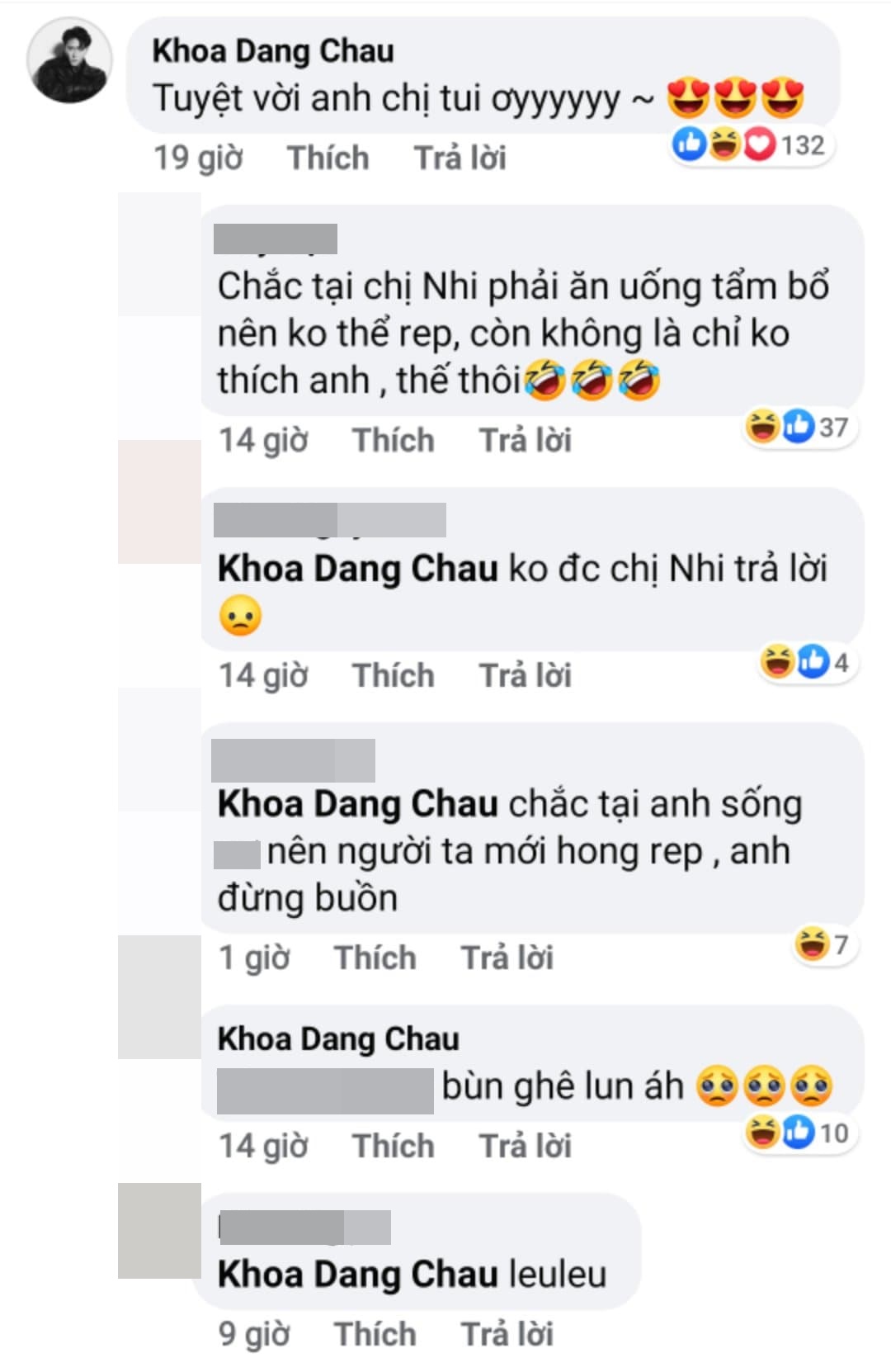 Cụ thể, Châu Đăng Khoa đã bình luận: “Tuyệt vời anh chị ơi“, nhưng không hiểu lý do gì mà rất lâu sau đó vẫn không nhận được lời phản hồi của Đông Nhi. Có thể do số lượng bình luận quá nhiều nên việc Đông Nhi quên trước quên sau là điều dễ hiểu, thế nhưng điều đáng chú ý nằm ở việc một bộ phận anti-fan đã vào “xéo sắc” Châu Đăng Khoa với những lời lẽ “chọc quê” vì không được đàn chị phản hồi. Tuy nhiên, đứng trước những bình luận từ anti-fan này, Châu Đăng Khoa chỉ nhẹ nhàng đáp trả: “Buồn ghê luôn á“.