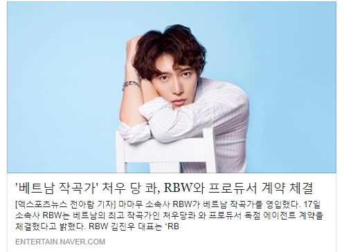 Bài báo Hàn mang tựa đề “Hợp đồng sản xuất kết hợp giữa RBW với Nhà soạn nhạc Việt Nam Châu Đăng Khoa”.