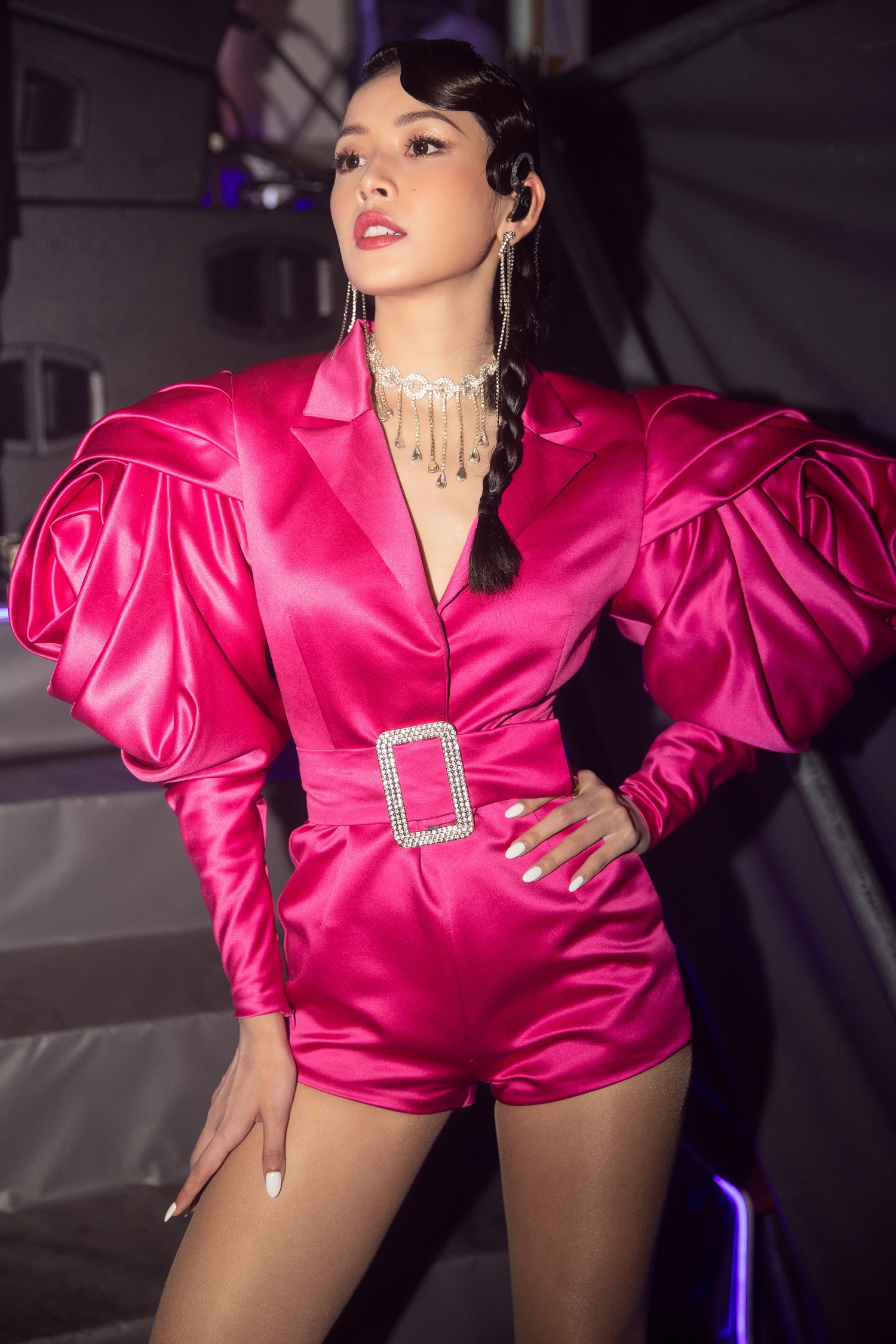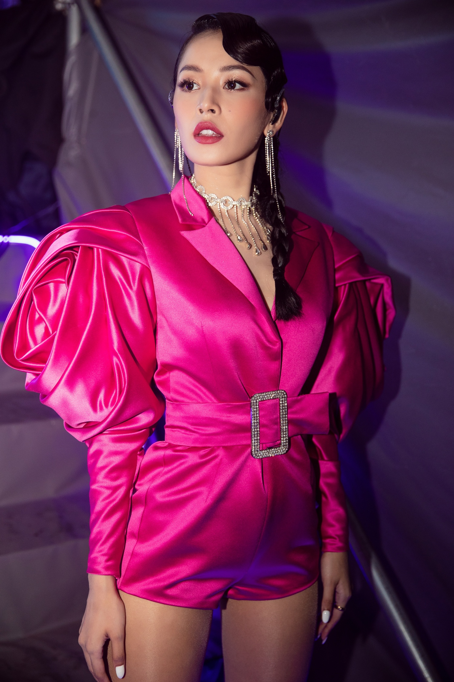 Nếu như ở show thời trang, Chi Pu diện chiếc đầm đỏ được cắt xẻ táo bạo, khoe trọn bờ vai trần quyến rũ và hờ hững khoe vòng 1 thì ở đêm nhạc tại phố đi bộ Nguyễn Huệ, cô đã chuyển sang trang phục màu hồng, tạo vẻ sang chảnh, ấn tượng.