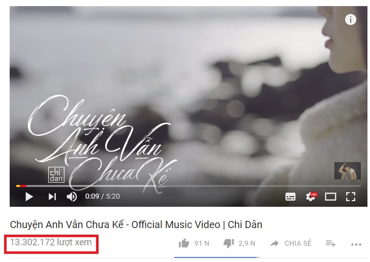 MV hiện đạt thành tích khá tốt với hơn 13 triệu lượt xem.