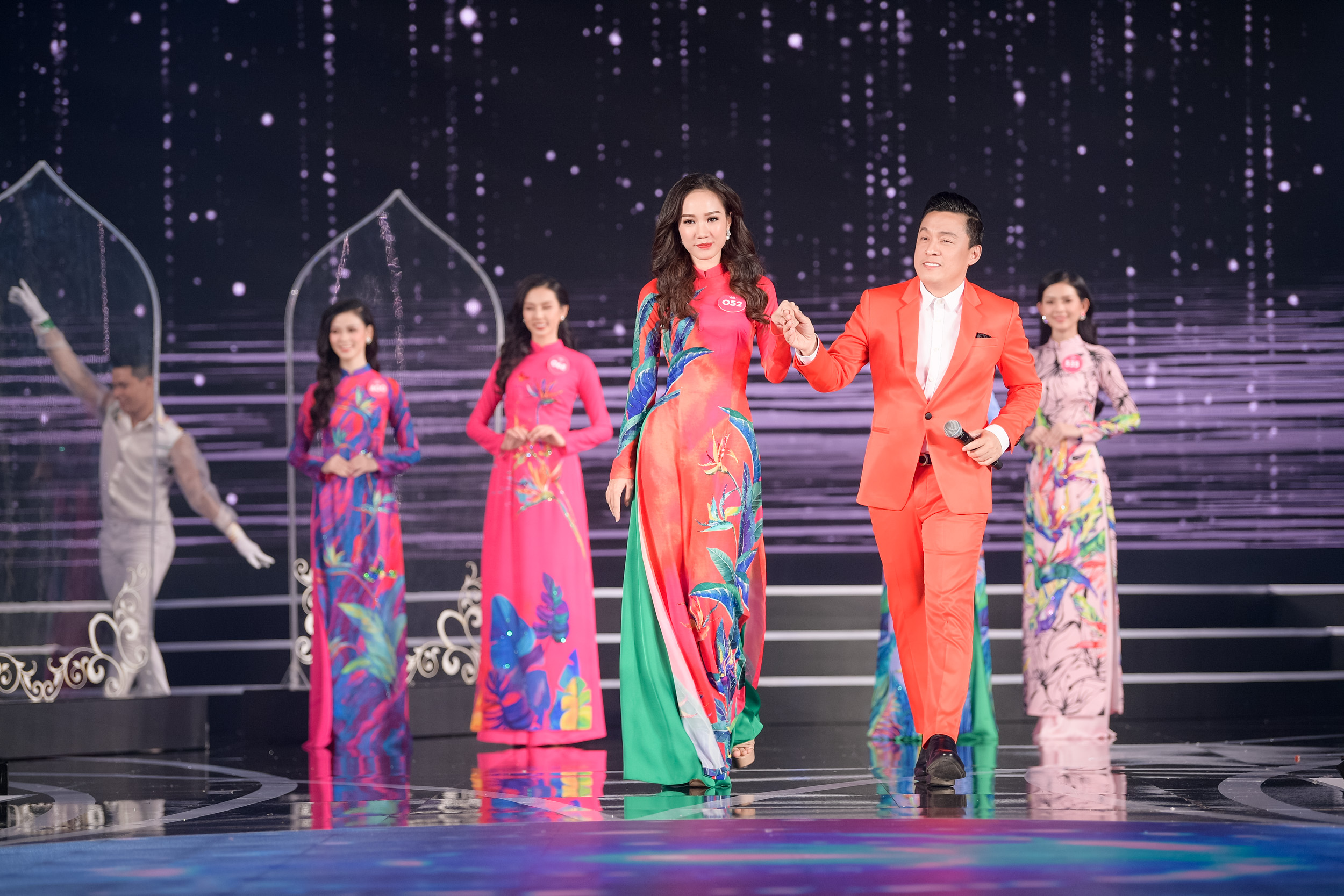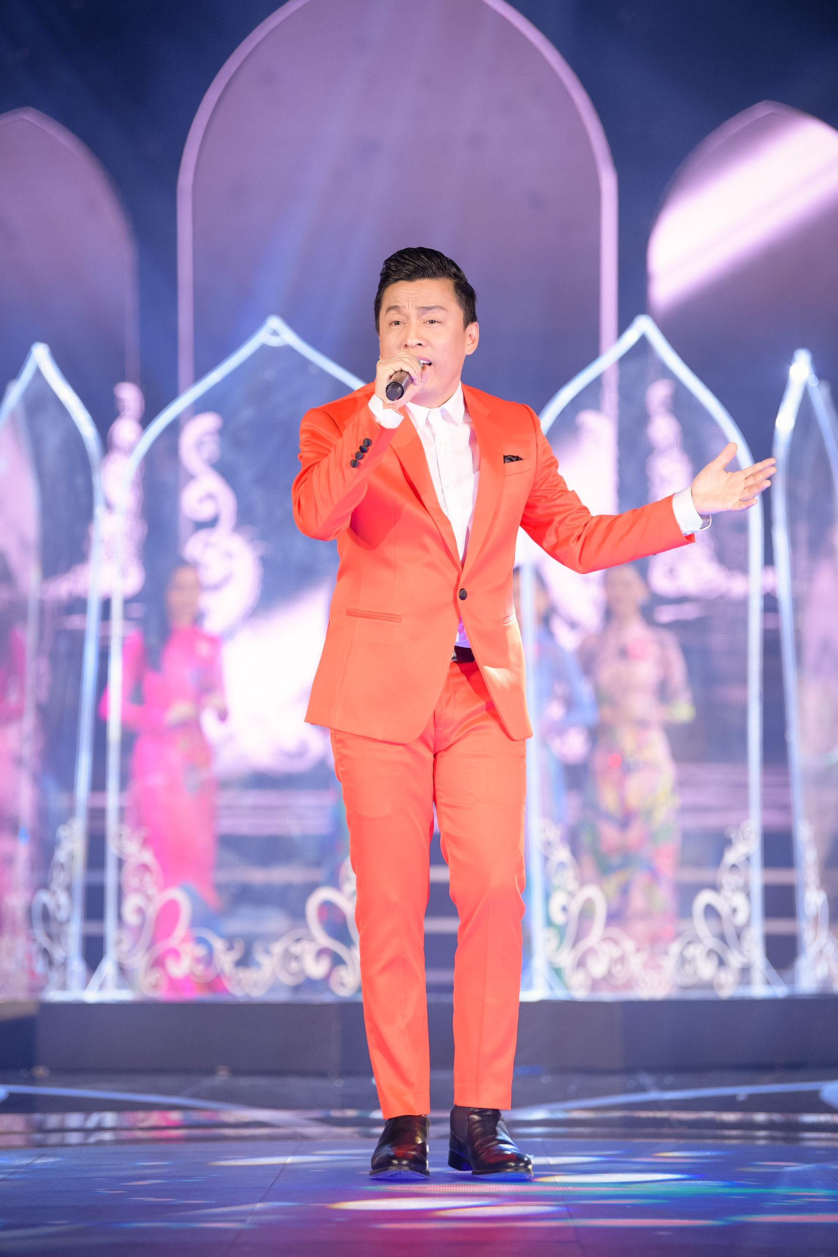Nam ca sĩ lịch lãm bên dàn thí sinh.