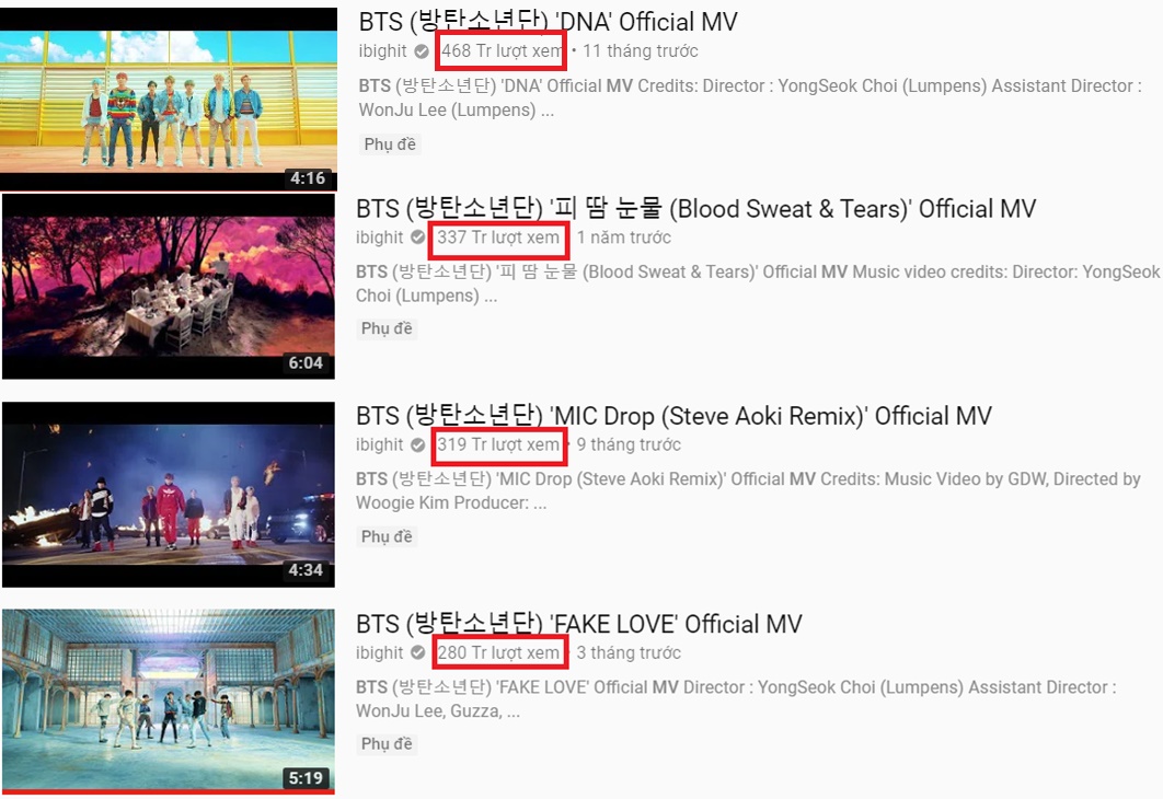 Theo thống kê gần đây được công bố bởi Youtube, ibighit là kênh Youtube Kpop có mức tăng trưởng cao nhất trong nửa đầu 2018.