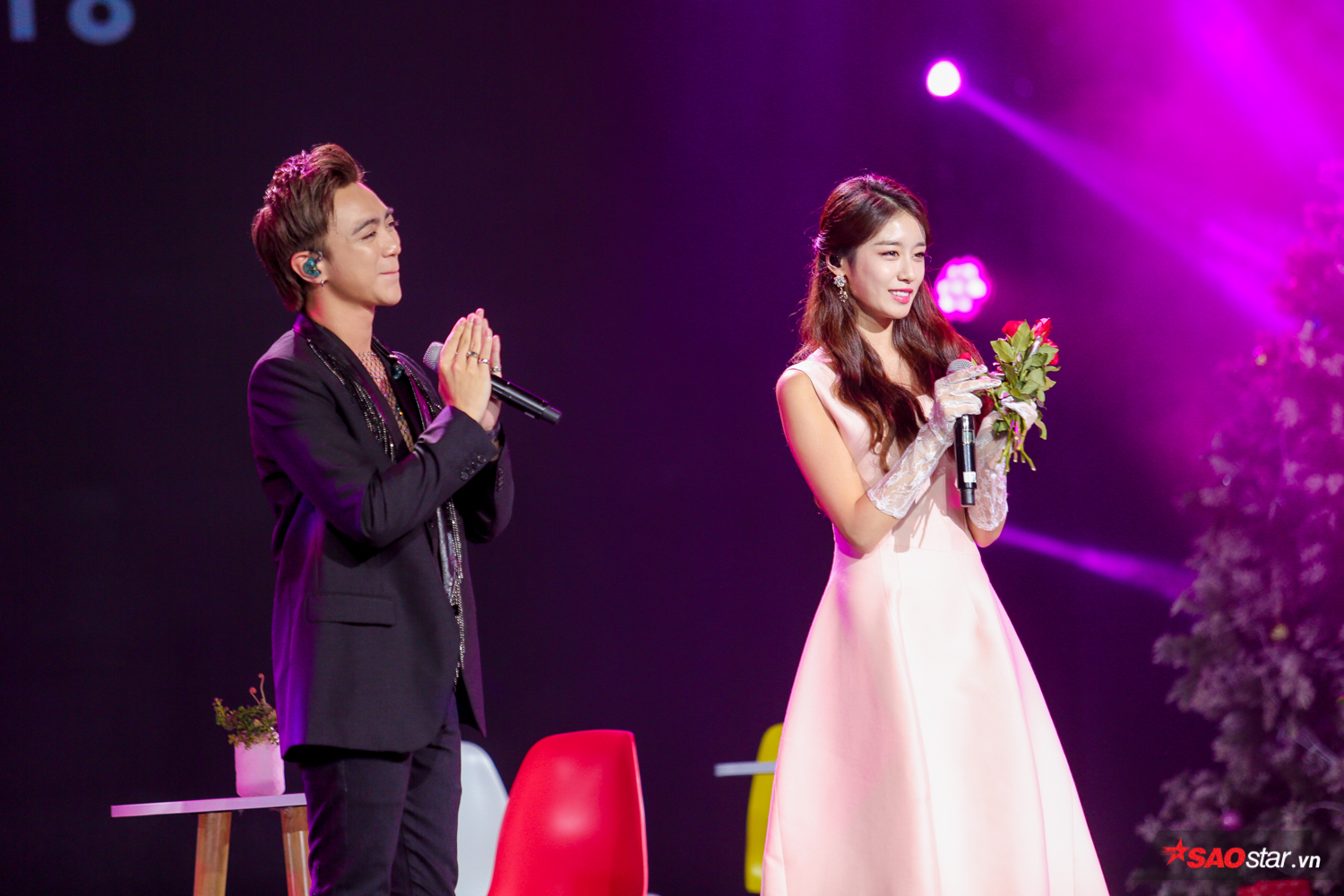Cả hai nghệ sĩ cùng khiến khán giả “mắt tròn mắt dẹt” khi hát trực tiếp bằng ca tiếng Hàn lẫn tiếng Việt. Phân đoạn mở đầu, cả hai đã cùng hát Đẹp nhất là em bằng phiên bản tiếng Hàn, ngay sau đó Jiyeon khiến fan Việt một phen thích thú khi hát rất rành rẽ tiếng Việt, đập tan những “tin đồn” trước giờ về khả năng hát tiếng Việt của mình.