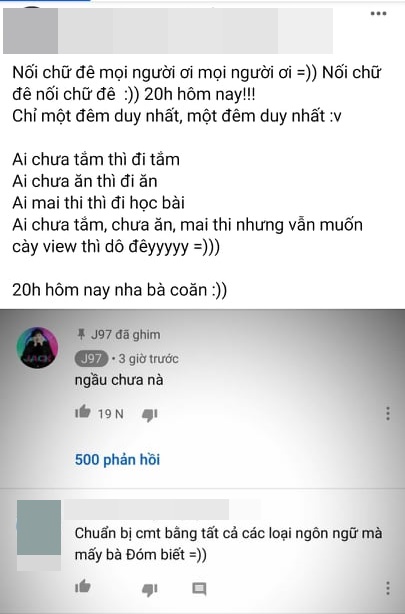 Cụ thể, một fanpage của Jack đã kêu gọi người hâm mộ cùng nhau thực hiện chiến dịch vừa cày view vừa chơi… nối chữ. Lý giải cho việc này, đây là cách để tăng tương tác cho đoạn clip của Jack, vì nếu như có quá nhiều bình luận giống nhau, nhiều khả năng sẽ bị Youtube đánh dấu là spam. Thế nên với trò nối chữ này, sẽ không sợ bị đánh dấu spam mà chỉ sợ… bí từ.