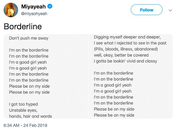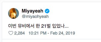 Không lâu trước đó, Sunmi có hé lộ lyrics cho một số bài hát ở lần tái xuất đầu tiên trong 2019. Theo đó, 2 bài hát được chính chủ bật mí có tên gọi Borderline và Hey You. Thế nhưng, có vẻ như đây vẫn chưa phải “át chủ bài” thực sự. Cựu thành viên Wonder Girls cũng tiết lộ, MV lần này của cô nàng sẽ được thay đến 21 bộ trang phục. Quả là một sự tái xuất đáng được quan tâm.