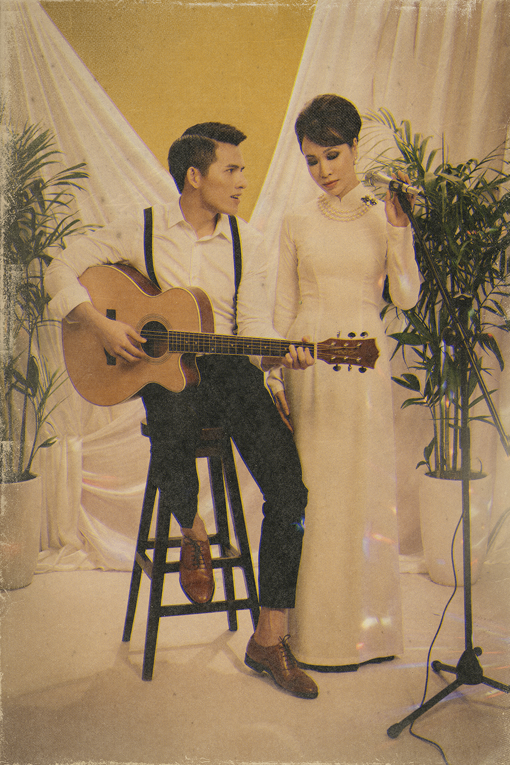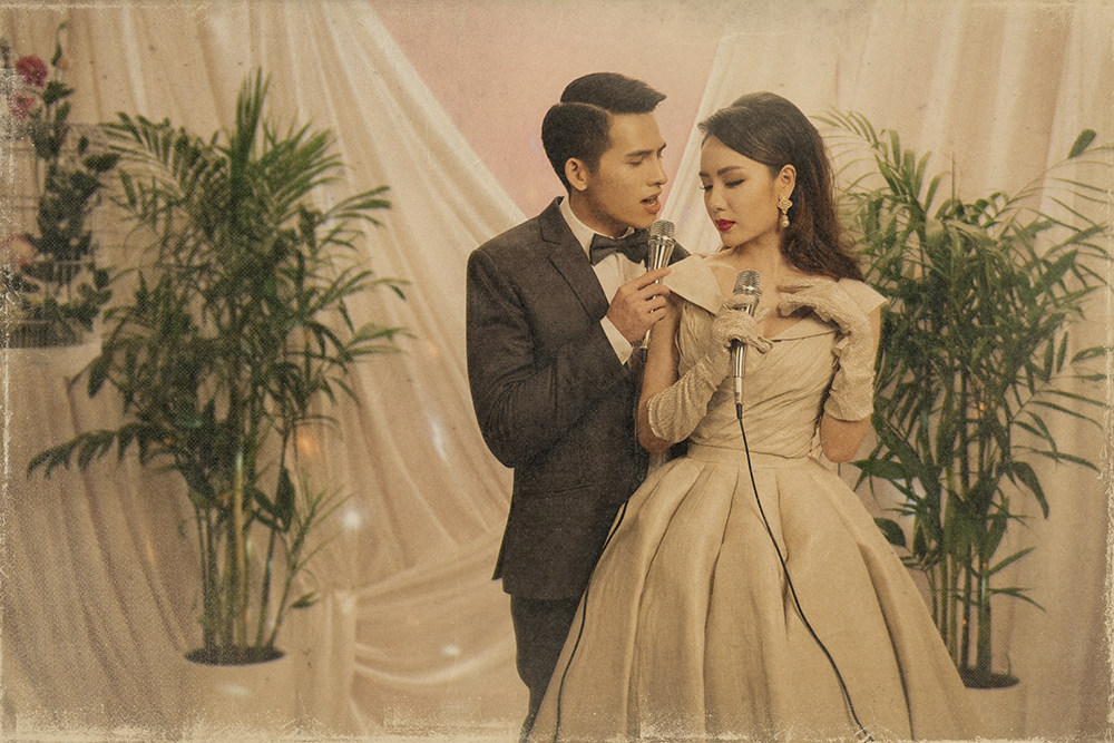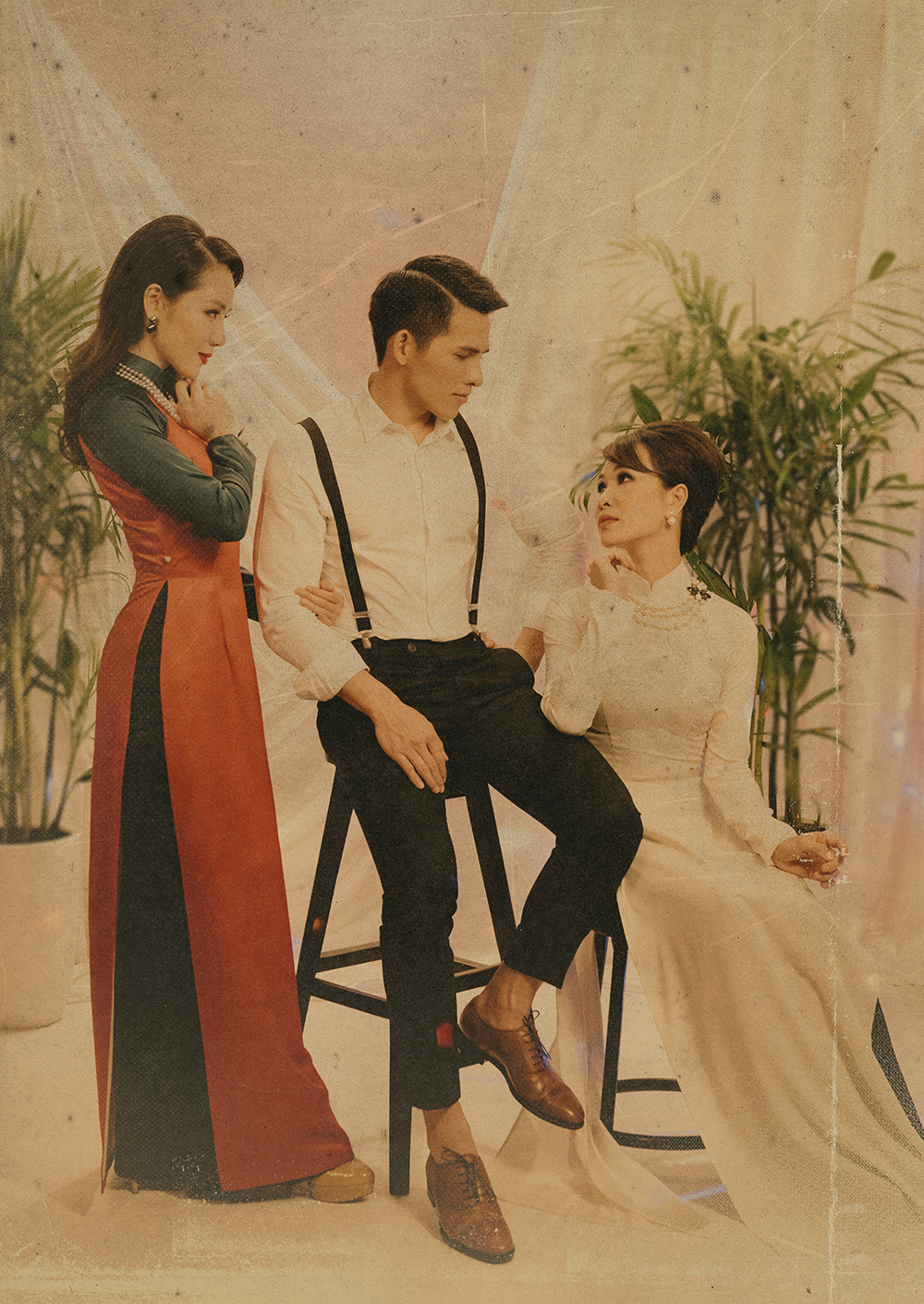 Trong bộ hình đậm màu hoài cổ, Quốc Thiên hóa quý ông lịch lãm khi quấn quýt bên 2 mỹ nhân xinh đẹp, dịu dàng. Quốc Thiên tiết lộ, bộ hình được thực hiện đúng trên tinh thần, cảm xúc mà dự án Tuyệt phẩm song ca hướng tới.