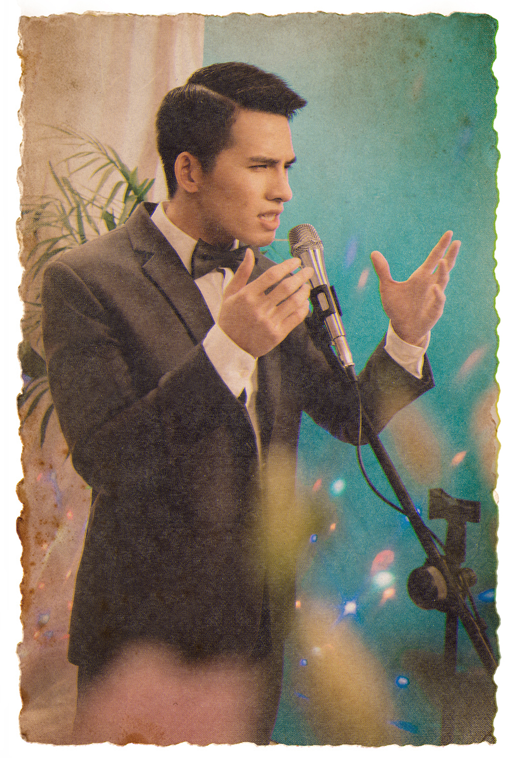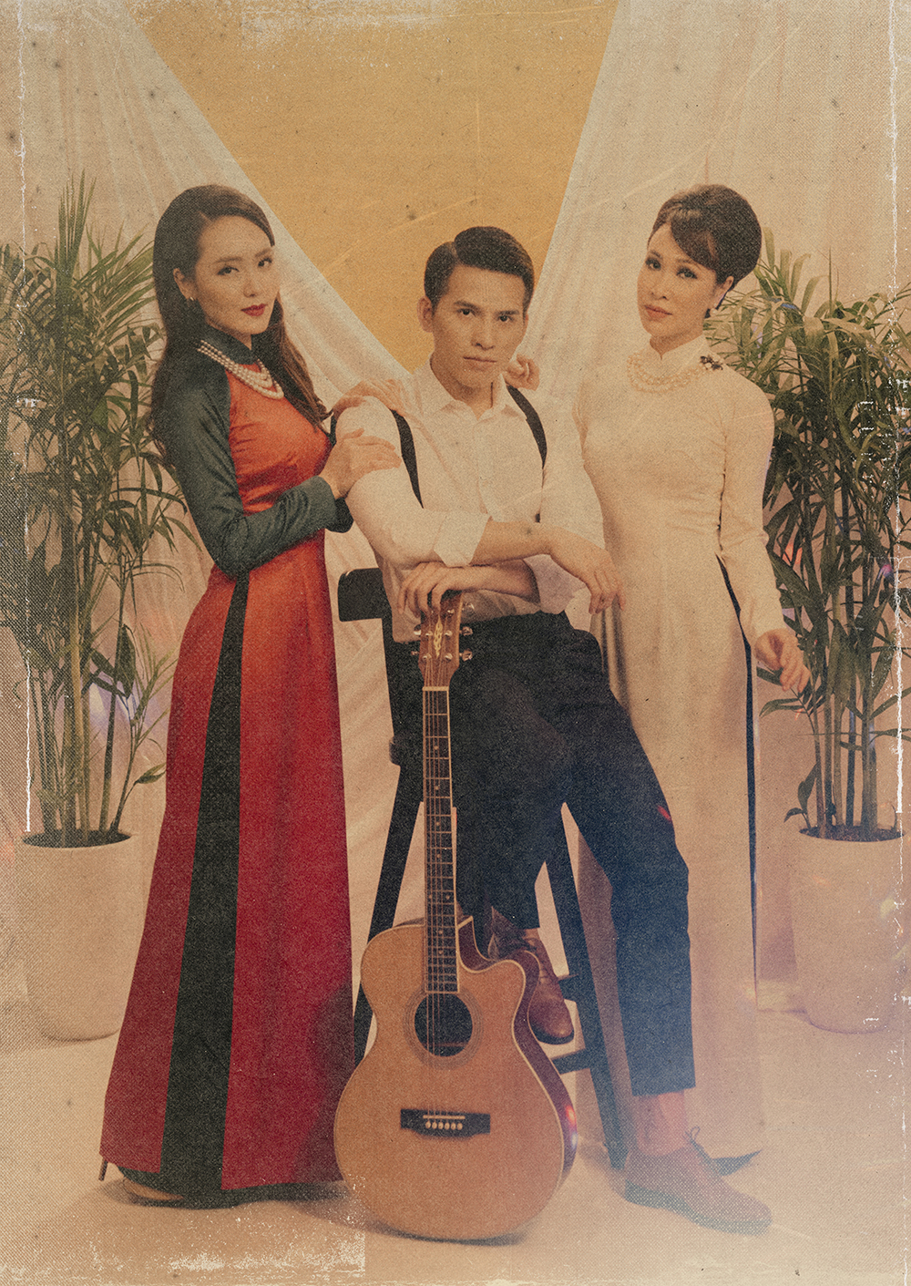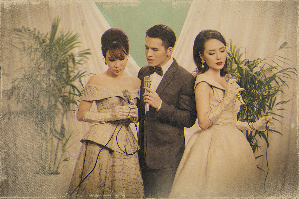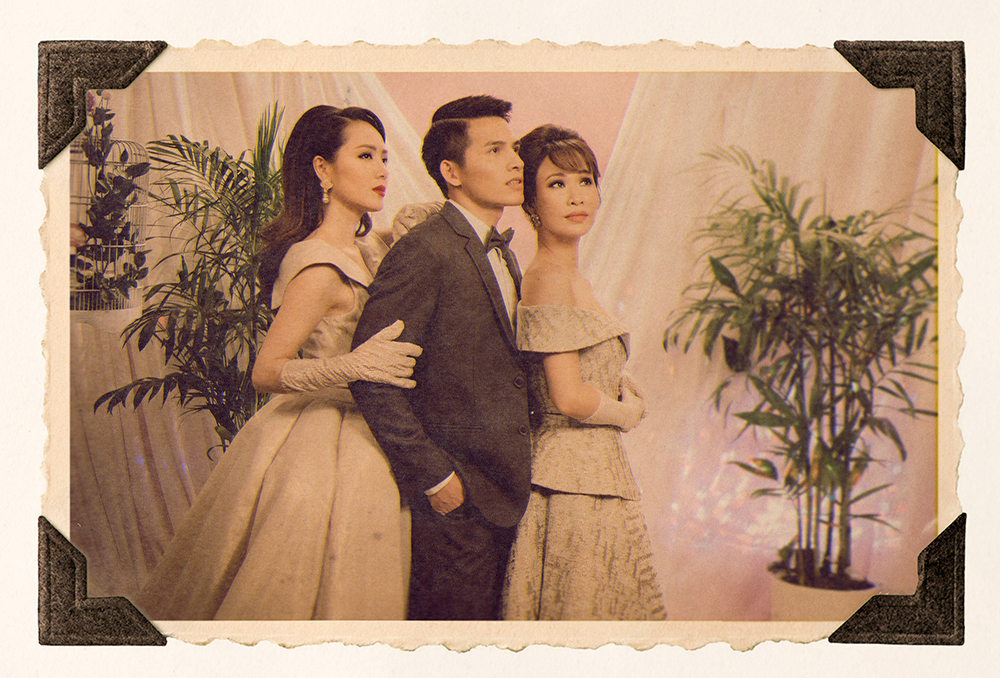 Trong bộ hình đậm màu hoài cổ, Quốc Thiên hóa quý ông lịch lãm khi quấn quýt bên 2 mỹ nhân xinh đẹp, dịu dàng. Quốc Thiên tiết lộ, bộ hình được thực hiện đúng trên tinh thần, cảm xúc mà dự án Tuyệt phẩm song ca hướng tới.