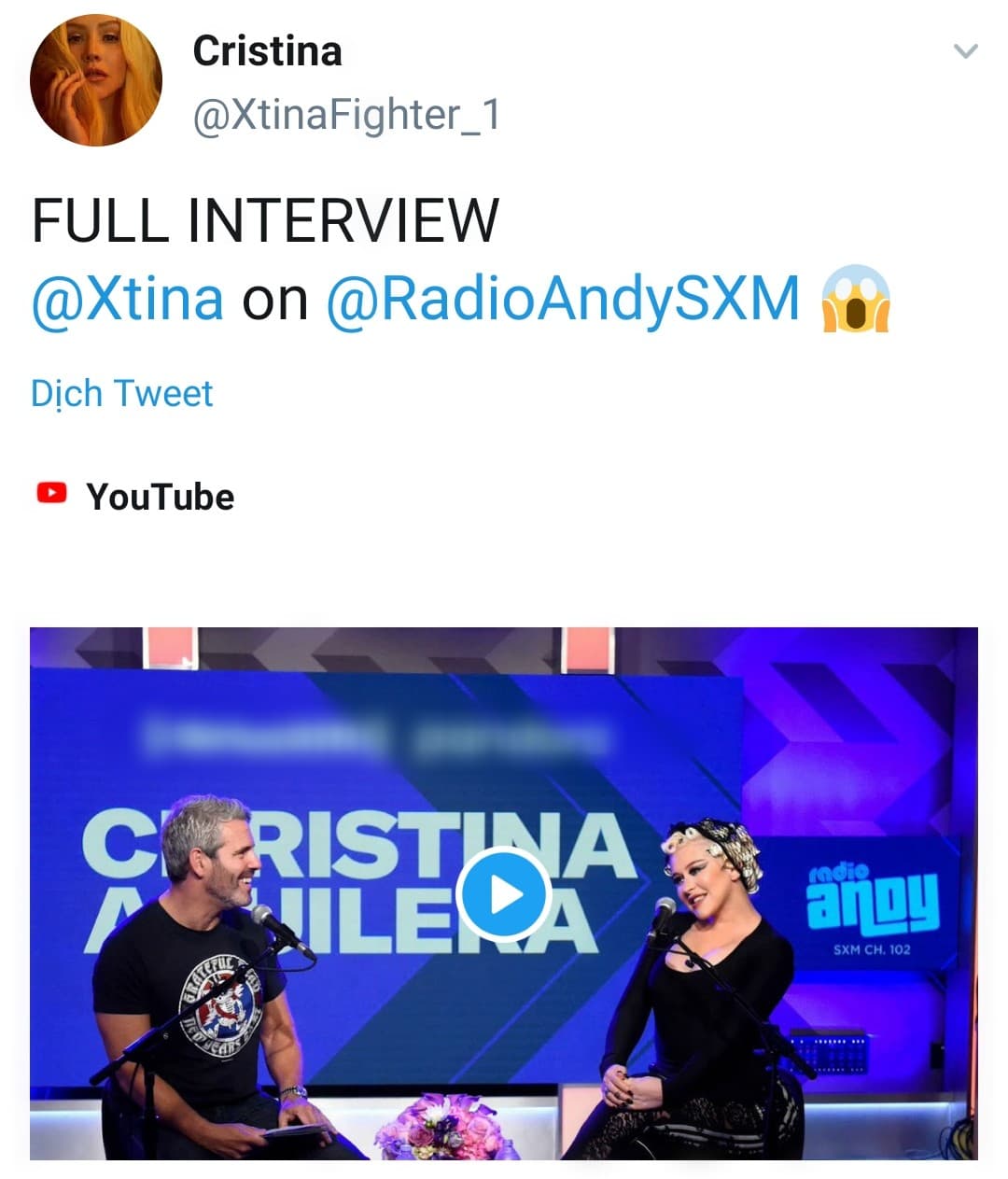 Trong số phát sóng mới nhất của The Andy Cohen show, Christina Aguilera đã xuất hiện tại chương trình với vai trò khách mời. Tại đây, nữ ca sĩ đã có những chia sẻ thú vị về cuộc sống và sự nghiệp của mình sau khoảng thời gian im ắng khá lâu. Tuy nhiên, trong buổi trò chuyện với “chủ xị” chương trình là Andy Cohen, Christina đã khiến cho nhiều người xôn xao khi chia sẻ về tình trạng hiện tại của Công chúa nhạc pop Britney Spears.