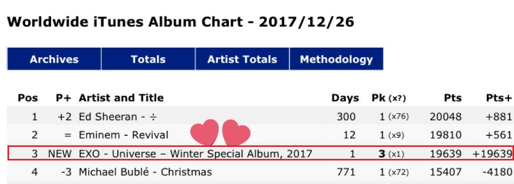 Với thành tích số 3 tại Worldwide iTunes Album Chart ngày 26/12/2017.