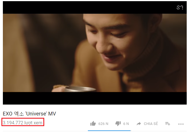 Ngày 26/12, EXO chính thức trở lại thị trường âm nhạc Kpop dịp cuối năm với MV Universe. Ca khúc chủ đề nằm trong album cùng tên của nhóm nhạc nam đình đám SM nhanh chóng được người hâm mộ đón nhận. Minh chứng là nhóm đã dành nhiều thành tích đáng kể chỉ sau chưa đầy 1 ngày ra mắt.