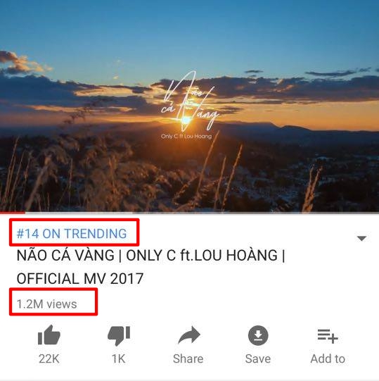 Thầy trò OnlyC - Lou Hoàng đón nhận tin vui khi MV Não cá vàng vừa ra mắt tối ngày 5/3 đã cán mốc hơn 1 triệu lượt xem trên Youtube và nằm trong Top 15 clip hot trend ở thời điểm hiện tại. OnlyC cũng nhanh chóng chia sẻ trên trang cá nhân của mình rằng đây chính là con số kỉ lục mà hai thầy trò lập được chỉ trong thời gian ngắn đối với những MV từ trước đến nay của mình.