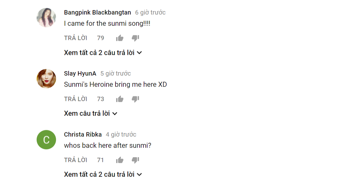 Chiều 18/1, Sunmi “thả xích” cho MV Heroine sau cú hit Gashina. Nhờ hiệu ứng quá lớn mà Gashina mang lại nên Heroine thu hút sự quan tâm đặc biệt từ dư luận, MV được hy vọng sẽ nối dài chuỗi thành công của cô nàng. Bằng chứng là chưa đầy 24h, Heroine đã cán mốc hơn 2 triệu view tính đến thời điểm hiện tại.