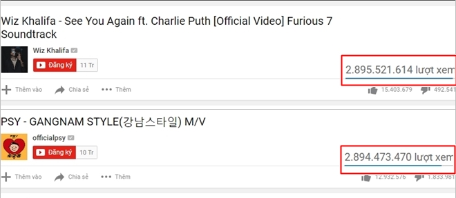 - Gangnam Style giữ vị trí số 1 trong suốt 4 năm. Thực sự đáng kinh ngạc đấy. See You Again cũng là 1 bài hát hay và có ý nghĩa.