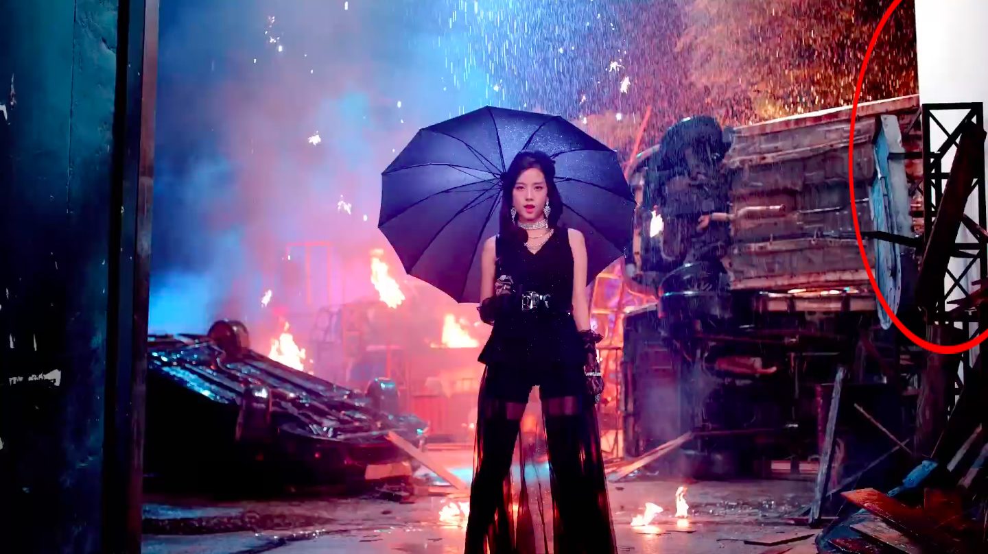 1. Cùng bắt đầu với bản hit K-Pop của năm 2018: Ddu-du ddu-du. Do khung hình thay đổi liên tục nên ít ai nhận ra rằng phông nền trắng của trường quay đã lộ ra như thế này đây: