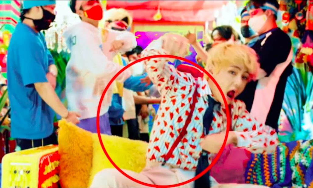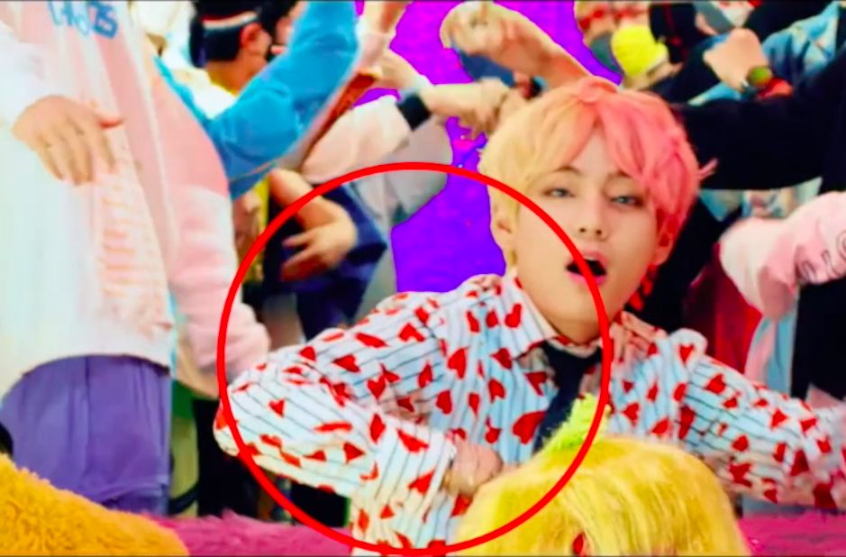 3. Chiếc đai áo màu đỏ của V bỗng dưng biến mất (MV IDOL feat. Nicky Minaj).