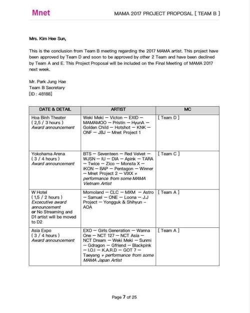 Danh sách bị rò rỉ trước đó của MAMA 2017.