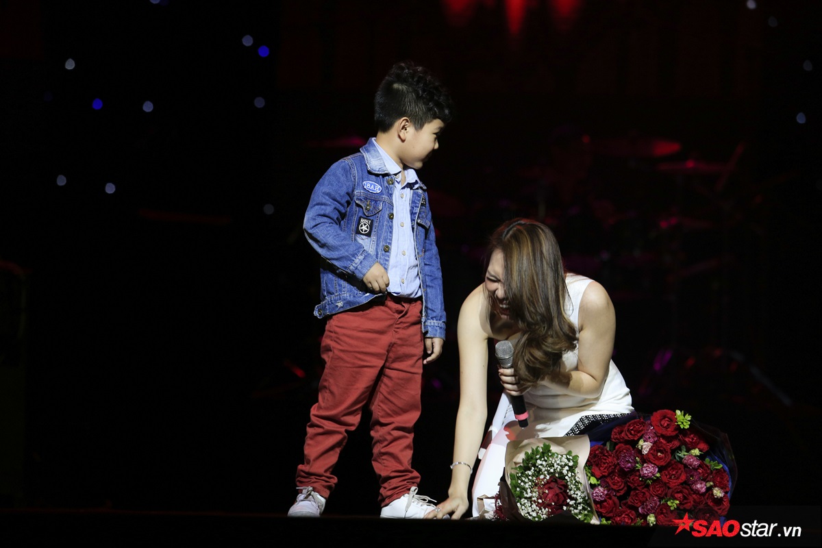 “Soái ca” nhí tặng hoa và “thơm má” đầy dễ thương cho Mỹ Tâm trong đêm Valentine.