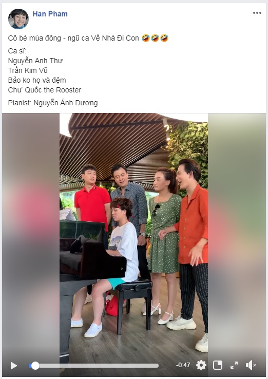 Mới đây, trên trang cá nhân của diễn viên trẻ Bảo Hân đã đăng tải đoạn clip thu hút gần 200 nghìn lượt xem của người hâm mộ. Theo đó, có thể thấy trong đoạn clip là hình ảnh của dàn diễn viên Về nhà đi con như Quốc Trường, Bảo Thanh, Tuấn Tú, Quang Anh cùng “pianist” Bảo Hân đang thể hiện ca khúc Cô bé mùa đông đầy ngẫu hứng.