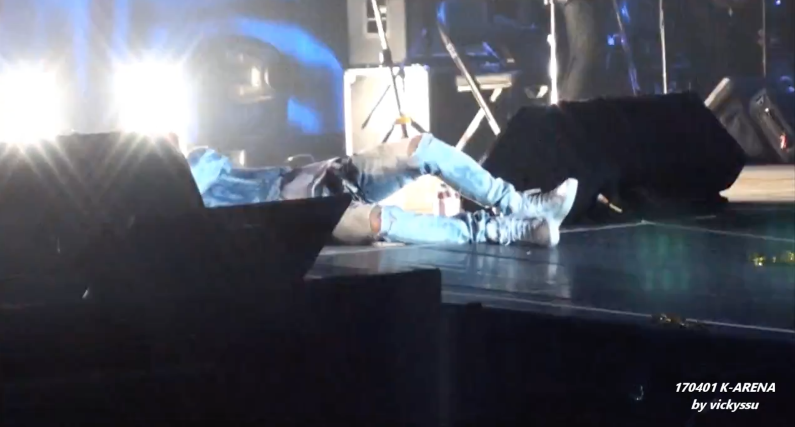 Các nhân viên an ninh lại còn nhanh chóng “bay” lên sân khấu để cấp cứu và đưa anh vào trong càng khiến người hâm mộ lo sợ.