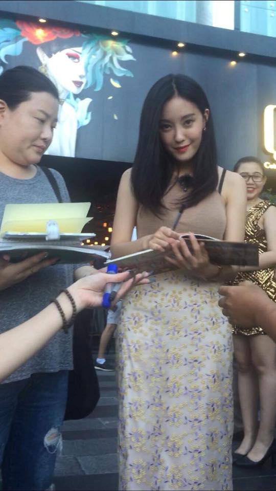Cô nàng chủ động tiến tới kí tặng cho người hâm mộ.