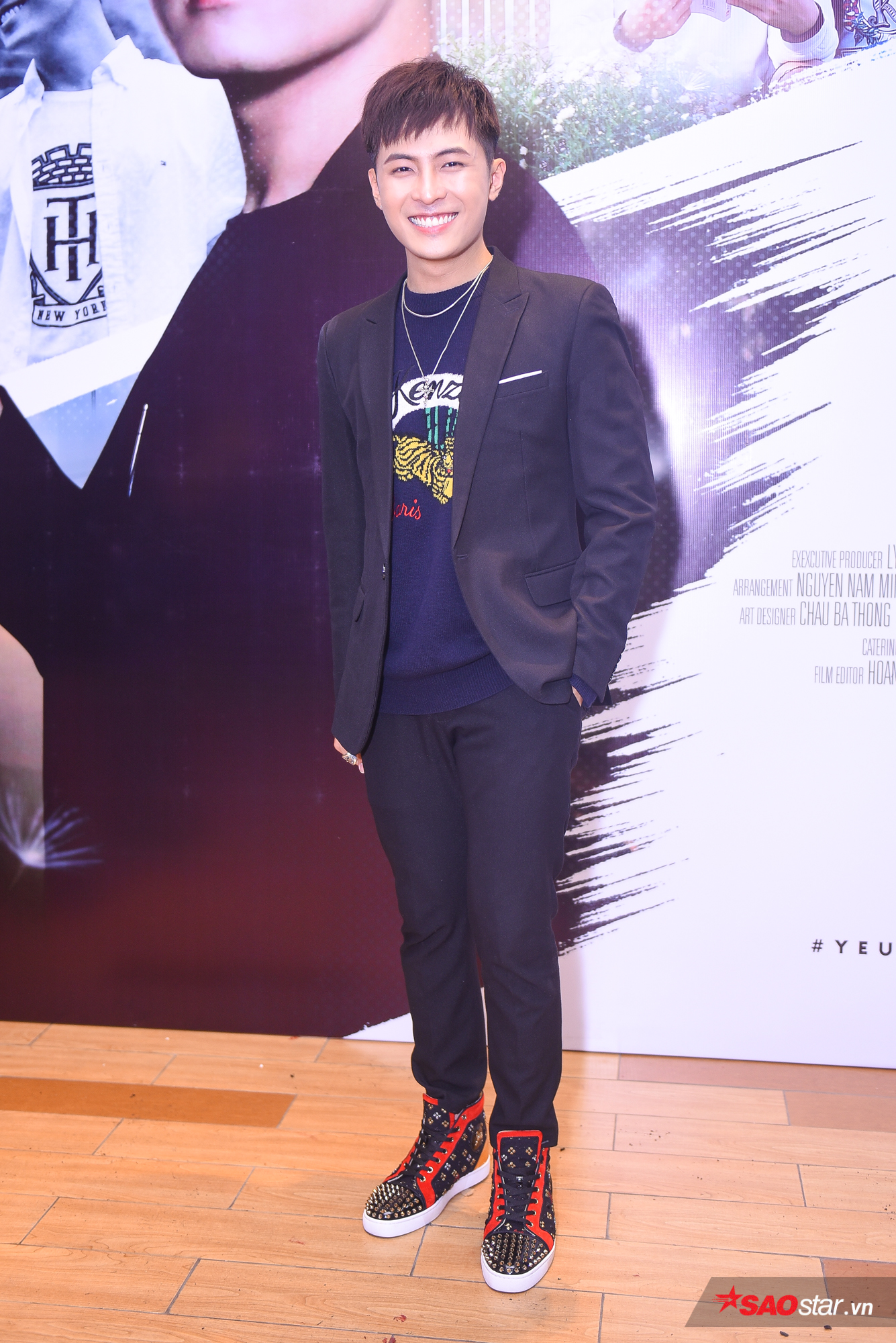 Gin Tuấn Kiệt diện trang phục vest bảnh bao trong buổi họp báo ra mắt MV.
