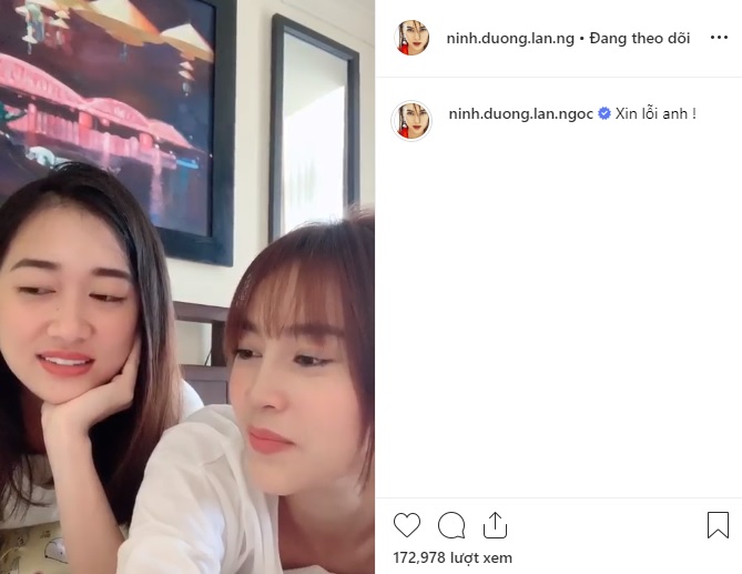 Dòng trạng thái và đoạn clip được Ninh Dương Lan Ngọc đăng tải trên Instagram.
