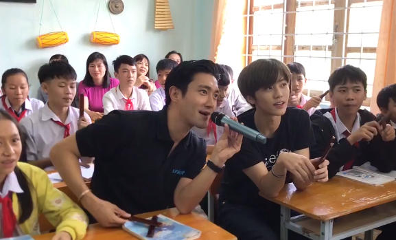 Siwon và Jaemin hát Hò Ba Lý cùng các bạn nhỏ tại Kon Tum.