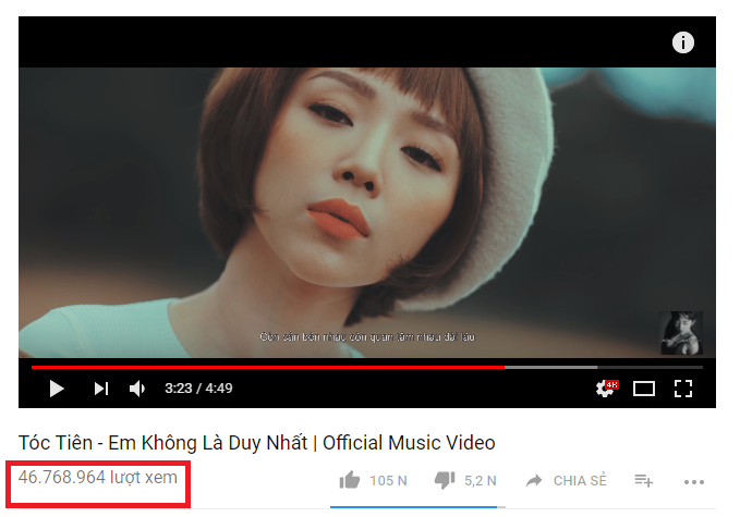 Bản hit Em không là duy nhất của Tóc Tiên hiện đã đạt con số gần 50 triệu lượt xem trên Youtube.