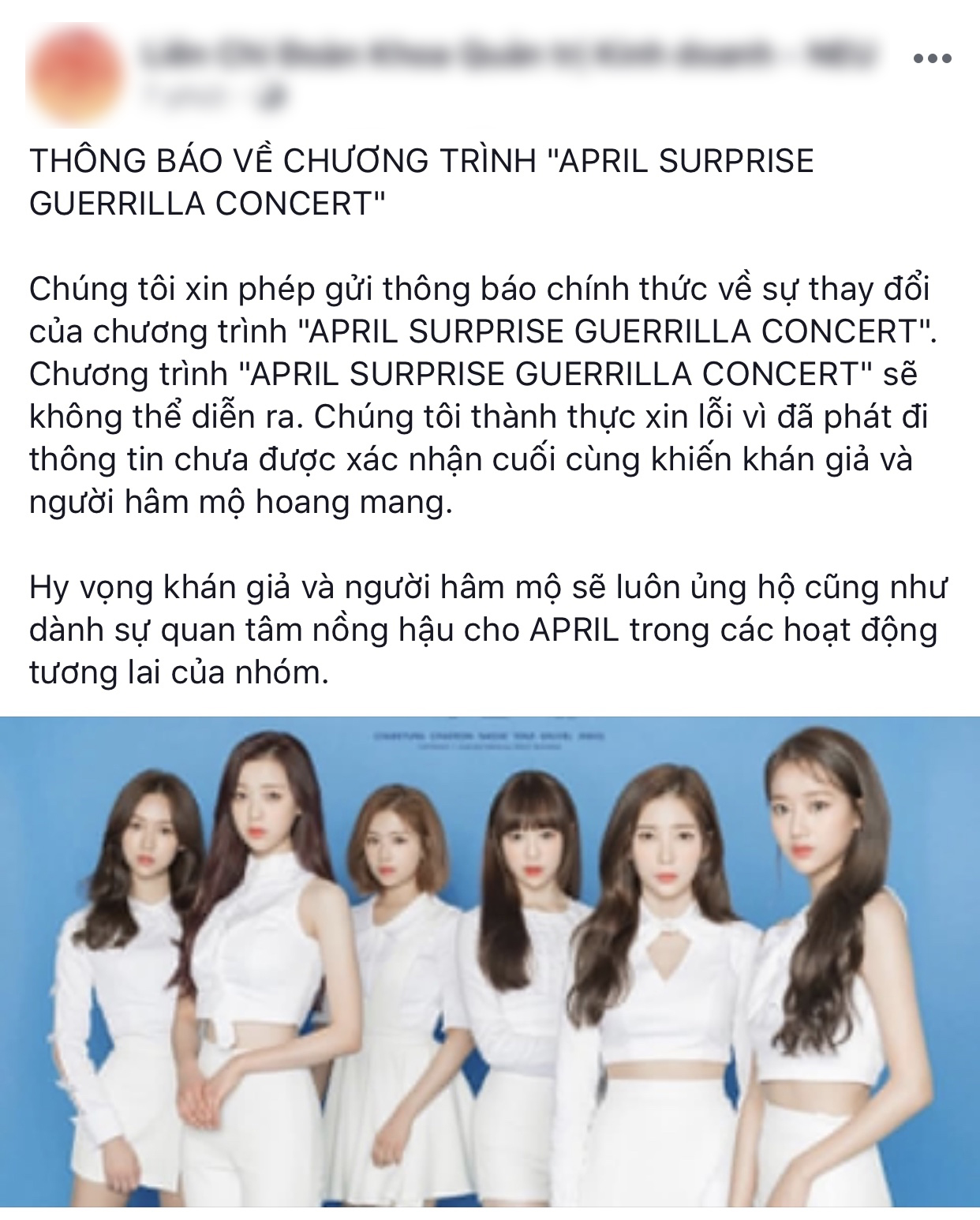Thông báo đêm diễn của APRIL tại Hà Nội sẽ không được diễn ra như dự kiến khiến nhiều người không khỏi tiếc nuối.
