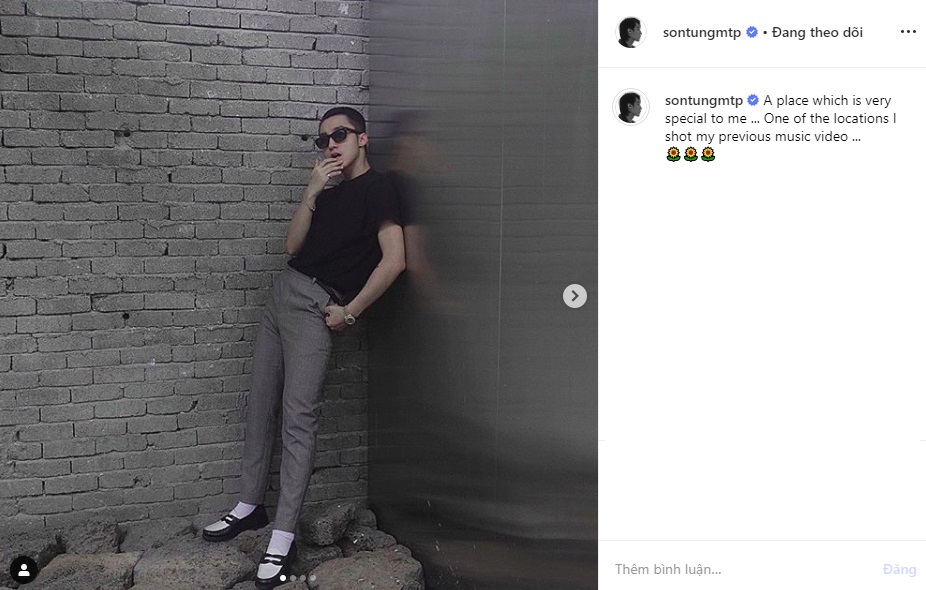 Hình ảnh và dòng trạng thái chia sẻ của Sơn Tùng M-TP trên Instagram.