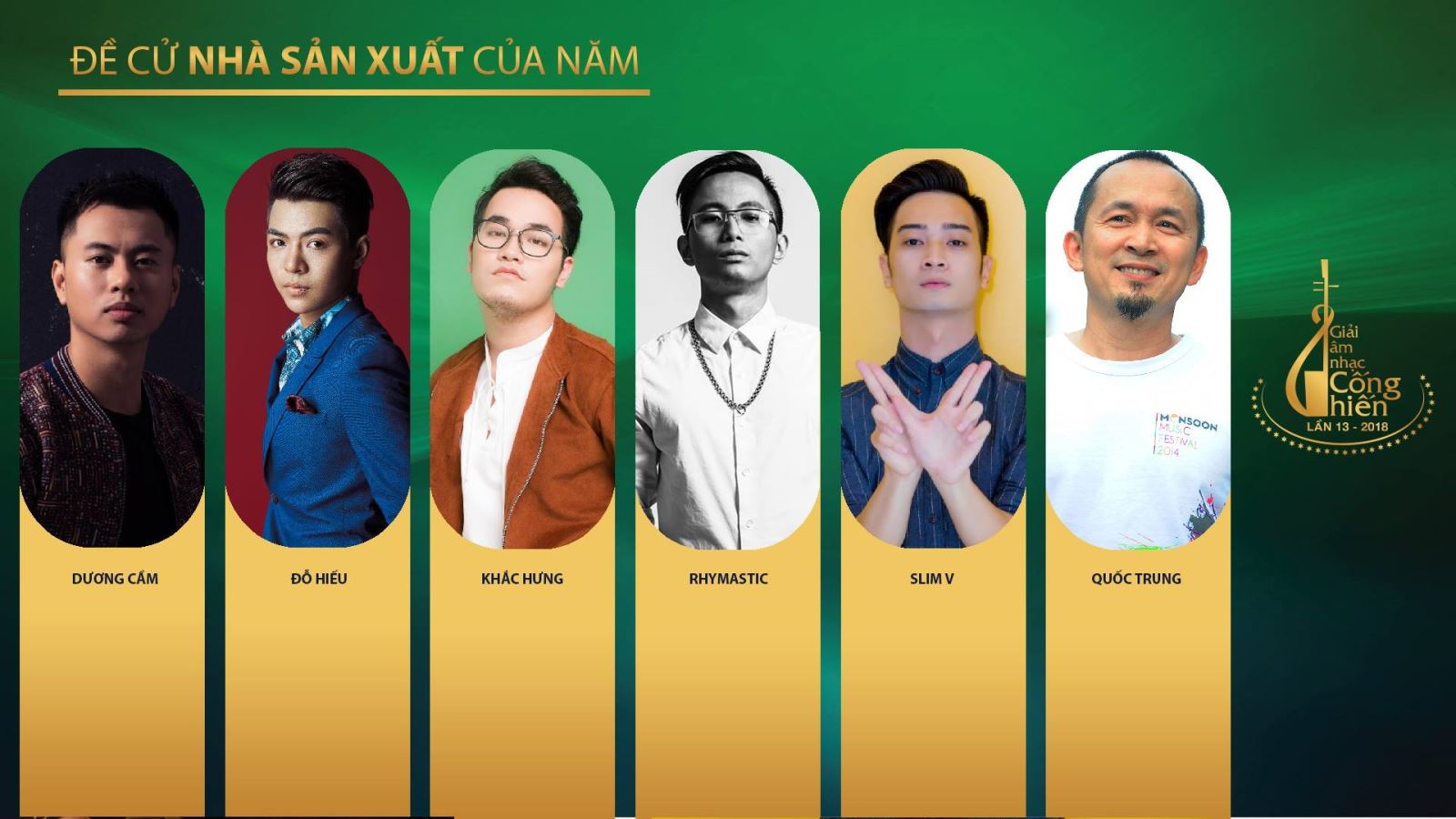 Đỗ Hiếu, Rhymastic, Slim V, Khắc Hưng - 4 cái tên producer kiêm nhạc sĩ trẻ đang có chỗ đứng nhất định trong làng Vpop xứng đáng để được đặt lên bàn cân cùng nhau. Trong danh sách này, nổi bật nhất phải kể đến Khắc Hưng, hit-maker hàng đầu 2017 vừa qua là chủ nhân loạt hit Ghen, Đâu chỉ riêng em, Đừng hỏi em,… và đóng vai trò nhà sản xuất cho Tâm 9 cũng được đề cử ở hạng mục Album của năm.