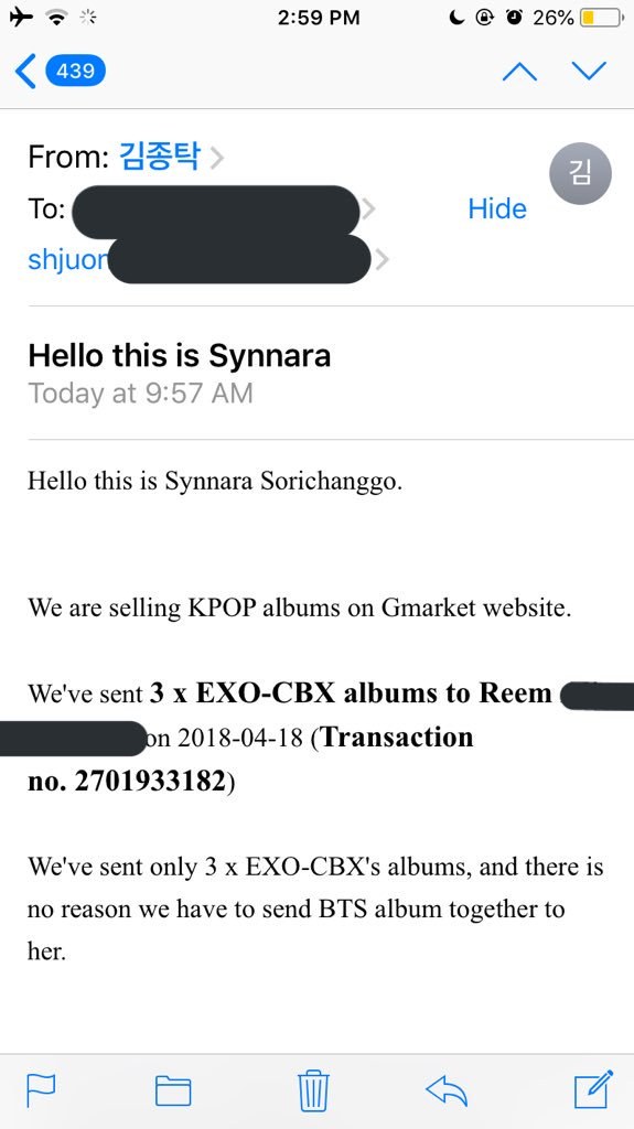 Trước sự việc này, fandom của BTS đã yêu cầu Synnara làm rõ trắng đen và lập tức nhận về lời khẳng định từ nhà cung cấp: “Chúng tôi khẳng định chỉ gửi đúng 3 album của EXO-CBX và không có lý do gì gửi thêm đĩa BTS nữa. Tuy nhiên, chúng tôi nhận ra vị khách hàng này đã dùng 1 tài khoản khác để mua thêm 1 album BTS”.