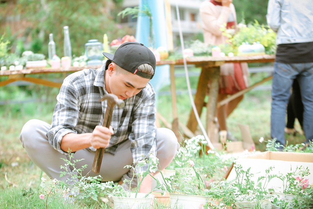 Không gian nơi tổ chức sự kiện được trưng bày hoa và ảnh đầy lãng mạn theo concept của MV.