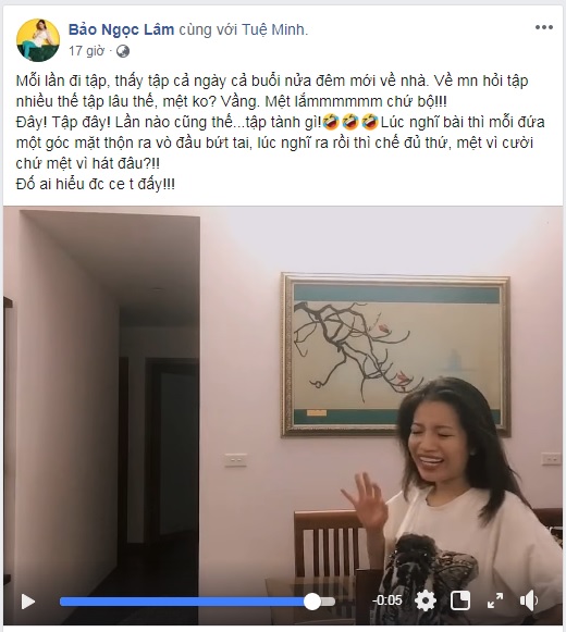 Mới đây, Lâm Bảo Ngọc - Á quân The Voice 2019 team HLV Tuấn Hưng đã đăng tải lên trang cá nhân một đoạn clip khiến cho các fan không khỏi thích thú. Cụ thể, cô nàng đã hé lộ với người hâm mộ một buổi tập nhạc khá… “lầy” của mình. Trong đoạn clip, dù không nghe rõ được Lâm Bảo Ngọc nói điều gì nhưng nhiều người cũng phải “cười lăn” vì cách tập luyện có 1-0-2 của cô nàng. Thậm chí, học trò HLV Tuấn Hưng còn thú nhận đi tập rất mệt nhưng là mệt vì cười mà thôi.