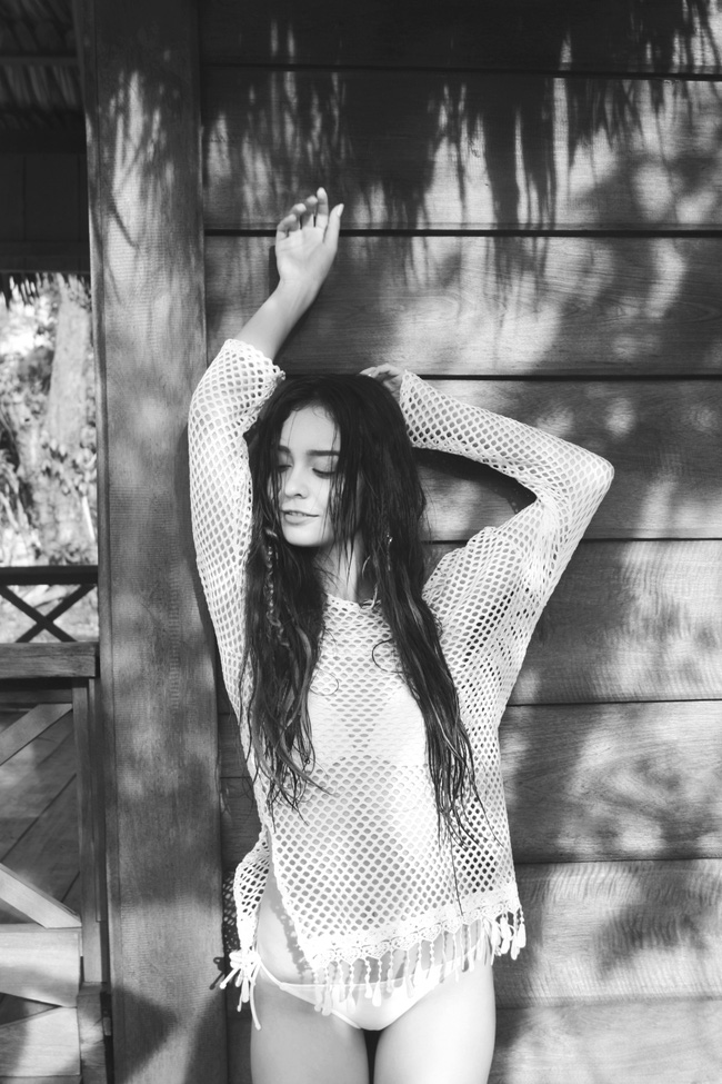 Và cá tính trong trang phục bikini trắng.