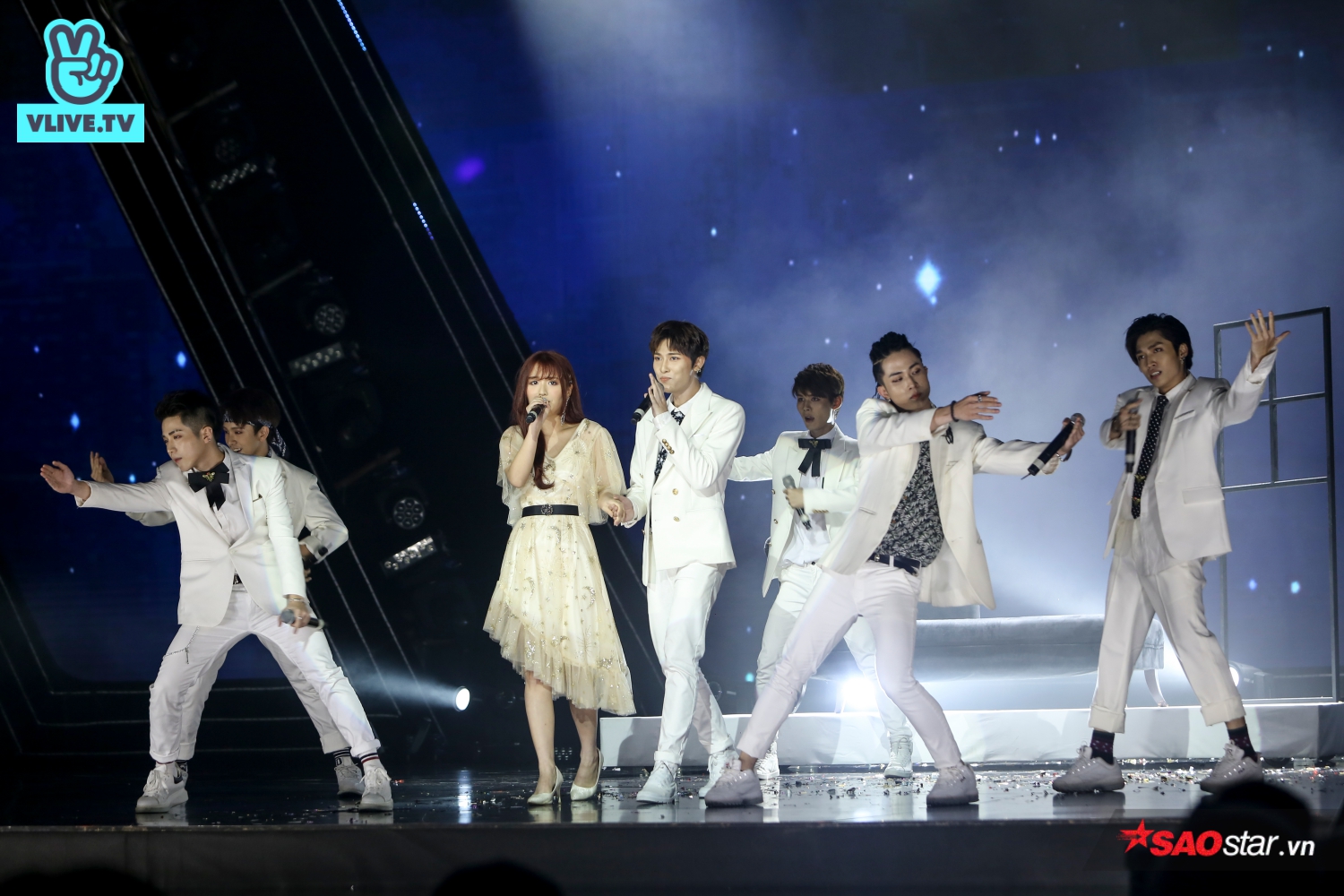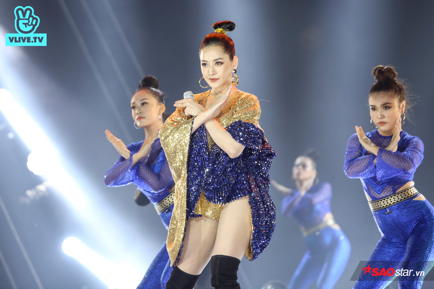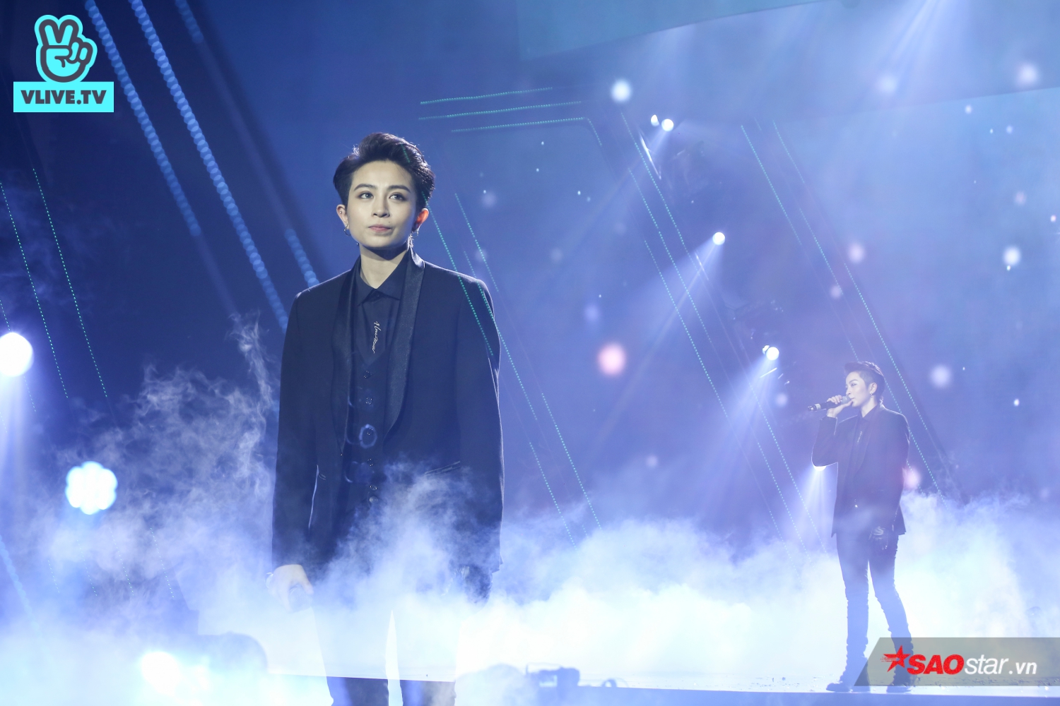Vừa hát live tốt, cô vừa thể hiện vũ đạo không biết mệt xuyên suốt tiết mục dài.