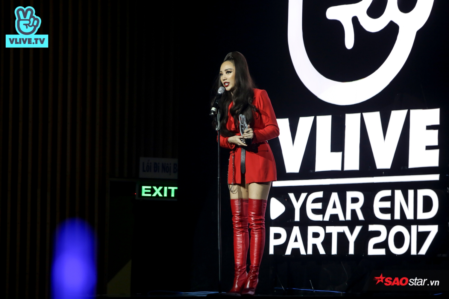Tối 19/1, V Live Year End Party có sự xuất hiện của dàn sao Việt đình đám và đặc biệt, nhóm nhạc nam hàng đầu xứ Hàn GOT7 diễn ra với nhiều tiết mục được dàn dựng hoành tráng, kết hợp vinh danh, trao giải cho những cái tên nổi trội rất được yêu thích thời gian qua. Đây thật sự là một “đại tiệc âm nhạc” mùa cuối năm vô cùng ấn tượng, thu hút sự chú ý của khán giả trên cả nước. Bên cạnh sự bùng nổ từ nhóm nhạc được mong chờ nhất GOT7, dàn sao nữ Việt với sự xuất hiện của Đông Nhi, Tóc Tiên, Chi Pu có vẻ như đã “lấn át” cả những “mỹ nam” trên sân khấu bằng loạt tiết mục sexy có, lắng đọng có, hoành tráng cũng không thiếu!
