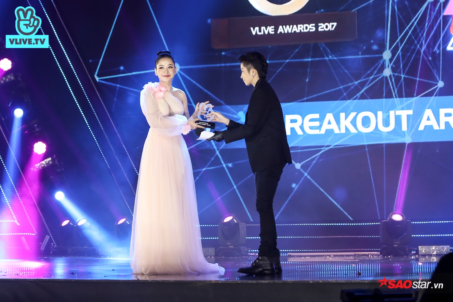 Vũ Cát Tường đã vượt qua Đông Nhi, Bảo Anh, Hari Won để vinh dự nhận chiếc cúp dành cho Best Female Artist. Tuy nhiên, cô cũng đang bận lưu diễn nên chỉ có thể chào các fan thông qua một đoạn video clip tự quay.