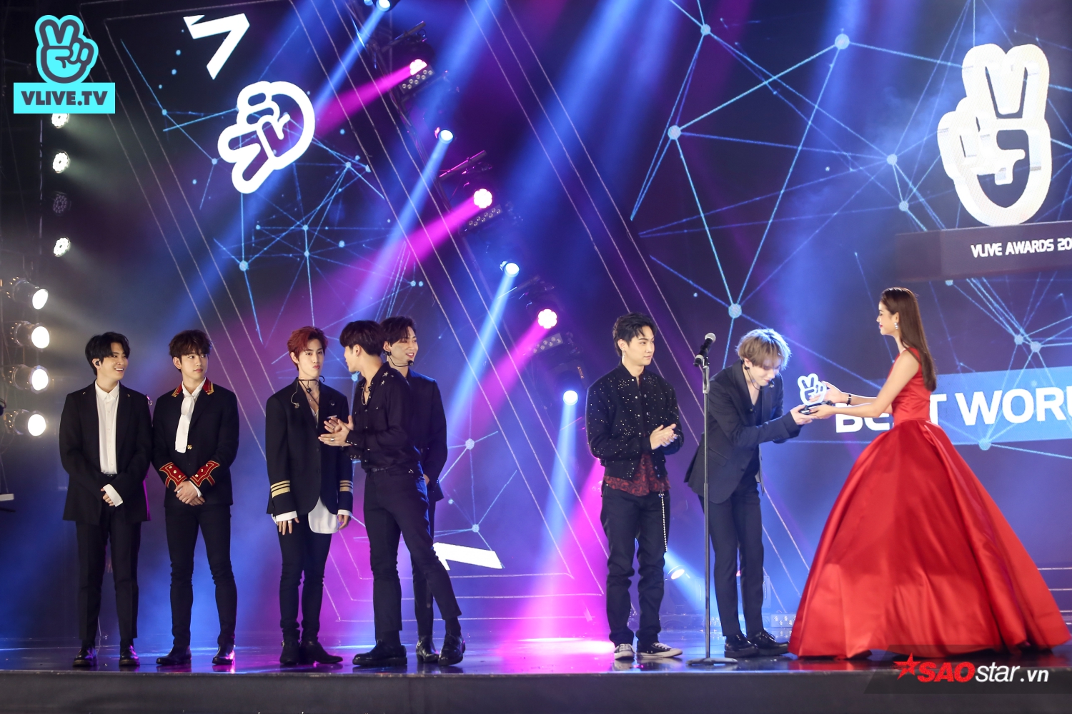 Lần xuất hiện trên sân khấu đầu tiên của các nhân vật được chờ đón nhất đêm là khi 7 anh chàng GOT7 nhận giải Best Worldwide Influencer. Ngay sau đó, GOT7 lui vào sau hậu trường để chuẩn bị phần trình diễn.