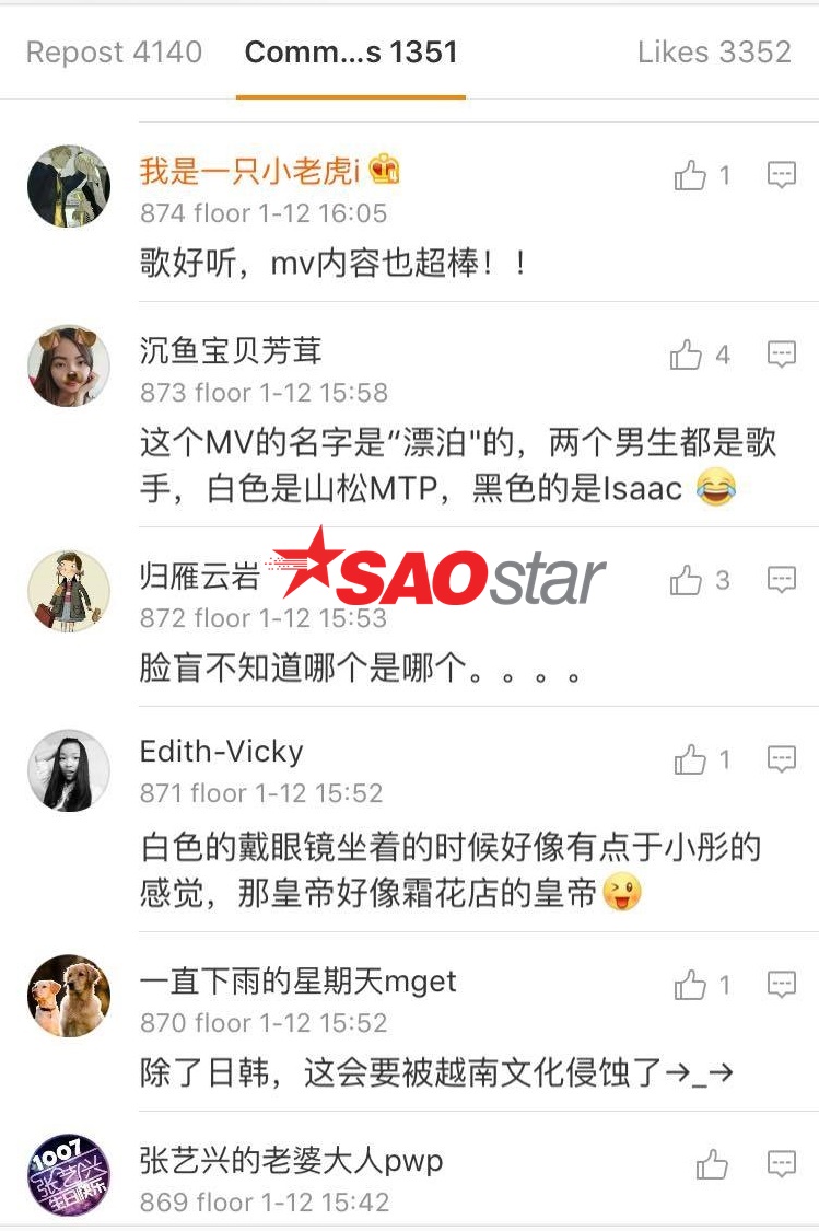 Cụ thể, đoạn clip fanmade ghép đôi Sơn Tùng - Isaac, cộng với phần nhạc nền là ca khúc Lạc trôi đã nhận được cơn mưa lời khen trên một fanpage và thu về đến hơn 1 triệu lượt xem, hàng ngàn bình luận tính đến thời điểm viết bài. Netizen Trung Quốc hoàn toàn bị nhan sắc của bộ đôi mỹ nam Vpop đánh gục. Bên cạnh đó, mặc dù bất đồng ngôn ngữ nhưng đám đông vẫn đánh giá Lạc trôi là một ca khúc hay và chất. Tạm dịch một số bình luận của netizen Trung Quốc: “Nhạc hay quá, nội dung MV cũng hay nữa”, “Đây là MV Lạc trôi, hai người họ đều là ca sĩ, tóc trắng là Sơn Tùng M-TP, tóc đen là Isaac”, “Âm nhạc rất chất lượng đó”, “Không ngờ Việt Nam cũng có mỹ nam như vậy”, “Đẹp trai quá”…