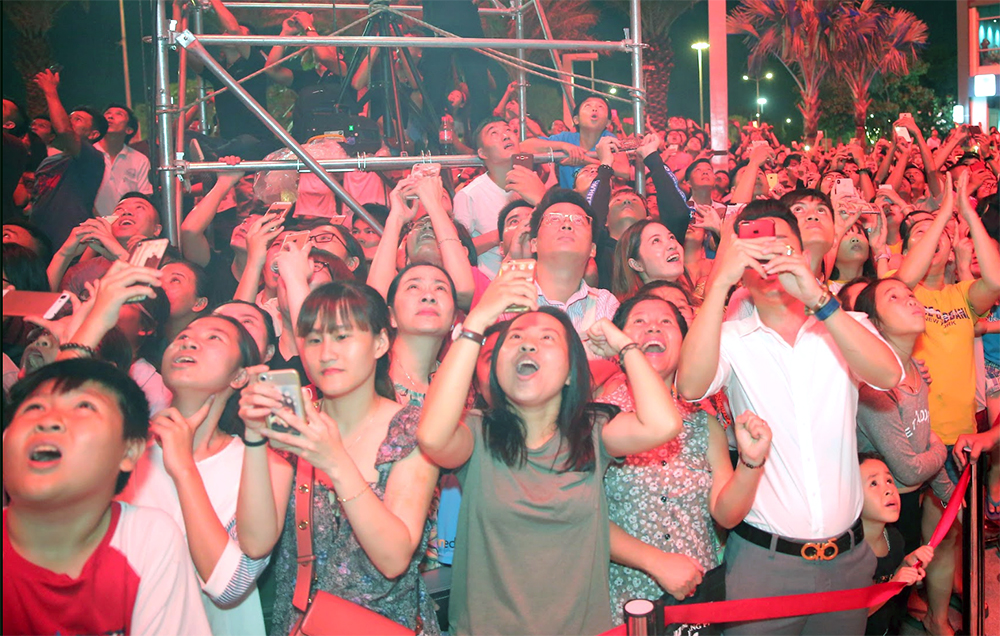 Không dừng lại ở đó, bữa tiệc khai trương Biểu tượng mới, Đỉnh cao mới còn đưa khán giả thăng hoa cảm xúc với màn bắn pháo hoa cùng hiệu ứng ánh sáng hoành tráng, đầy tự hào để chúc mừng Việt Nam đã ghi danh trên bản đồ quốc tế khi tòa tháp Landmark 81 chính thức ghi danh trong TOP những tòa nhà cao nhất trên thế giới.