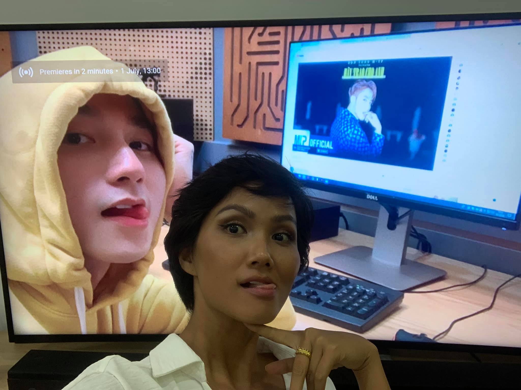 Ban ngày, người hâm mộ vẫn còn thích thú trước hình ảnh hoa hậu H'Hen Niê chia sẻ về việc đặt giờ đồng hồ nhiều khung liền để hóng MV của Sơn Tùng ra mắt thì đến tối, các fan lại càng hào hứng khi Hen cùng cả nhà trực sẵn trước màn hình Youtube để đợi xem ca khúc Hãy trao cho anh. Clip được Hen ghi lại và đăng tải trên trang cá nhân của mình.