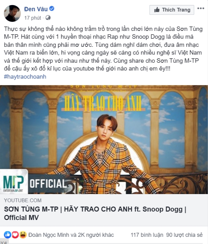 Không lâu sau khi MV phát hành, Đen Vâu cũng dùng nhiều lời có cánh để khen ngợi Sơn Tùng M-TP với sản phẩm âm nhạc mới này.