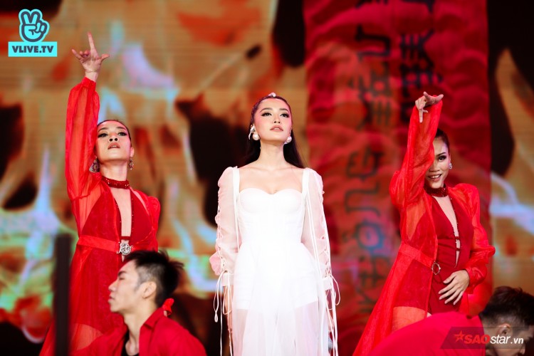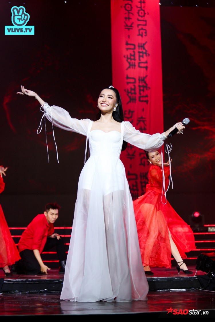 Những “lá bùa yêu” được thả xuống phụ họa từ trên cao như để tăng thêm tính “sát thương” đến với khán giả. Với phong thái “bất cần”, phụ họa với thần thái quyến rũ, chả lạ gì khi sân khấu của nữ ca sĩ Gửi anh xa nhớ luôn nóng hừng hực từ giây phút đầu xuất hiện cho đến tận giây phút khép màn.