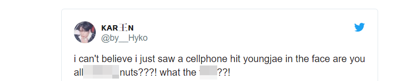 “Không thể tin được tôi vừa xem người ta ném điện thoại vào mặt YoungJae này, các người mất trí rồi hả?”