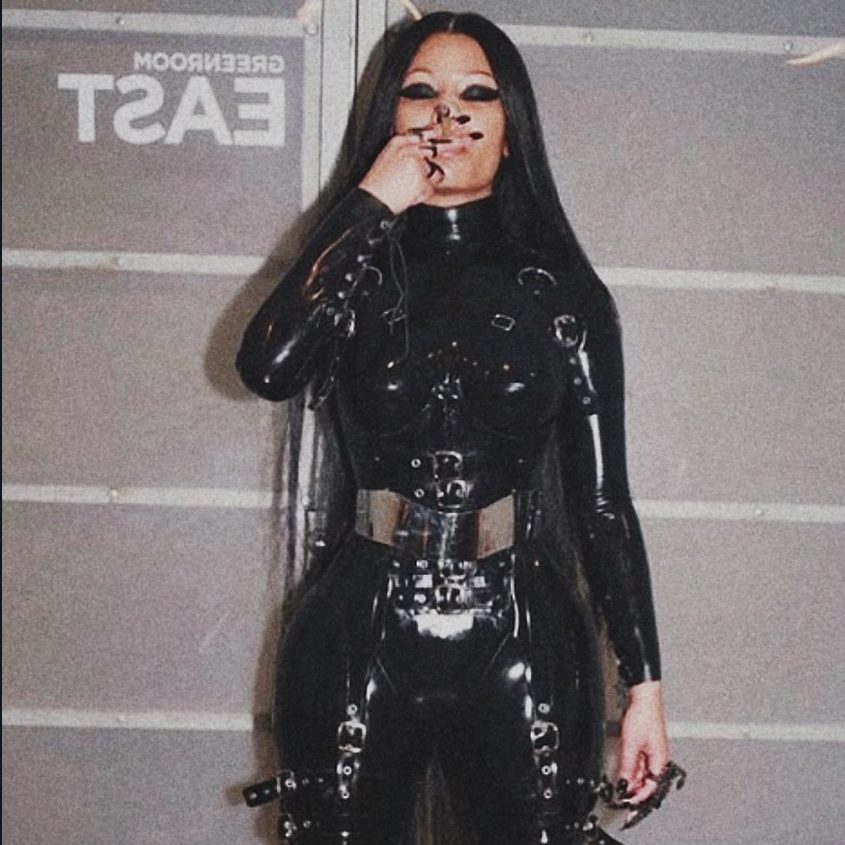 Trong tour diễn Nicki Wrld Tour đang “tung hoành” khắp Châu Âu, Nicki cũng chọn một thiết kế từ NTK Việt Nam để cùng “quẫy” trên sân khấu. Với chất liệu màu đen cùng các phụ kiện mang một chút hơi hướm “người lớn”, bộ trang phục hoàn toàn phù hợp cho các bản rap đầy quyền lực của Nicki Minaj.